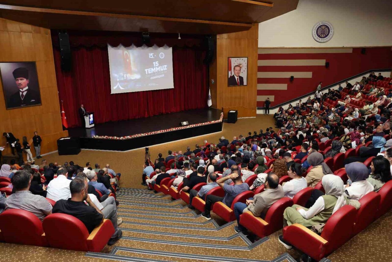Etkinliklerin son ayağında, Rektör Hacımüftüoğlu, üniversite yönetimi ve öğrencilerle birlikte “Demokrasi ve Milli Birlik Nöbeti”ne katıldı. Etkinlik kapsamında bir değerlendirmede bulunan Rektör Hacımüftüoğlu: “15 Temmuz gecesi, milletimizin demokrasiye sahip çıkmak için nasıl tek yürek olduğunu gösterdi. Bugün de aynı bilinçle, birlik ve beraberliğimizi koruyarak geleceğe emin adımlarla yürüyeceğiz” diyerek şehitlerin emanetine sahip çıkma sözü verdi.