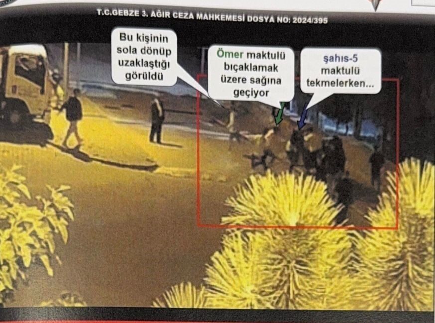 Gebze 3. Ağır Ceza Mahkemesi’nde görülen dava kapsamında, olay anına ait güvenlik kamerası görüntüleri Ulusal Kriminal Büro tarafından incelendi. Hazırlanan raporda, kalabalık grup arasındaki arbede, kişilerin konumları ve ellerindeki cisimler detaylandırıldı.