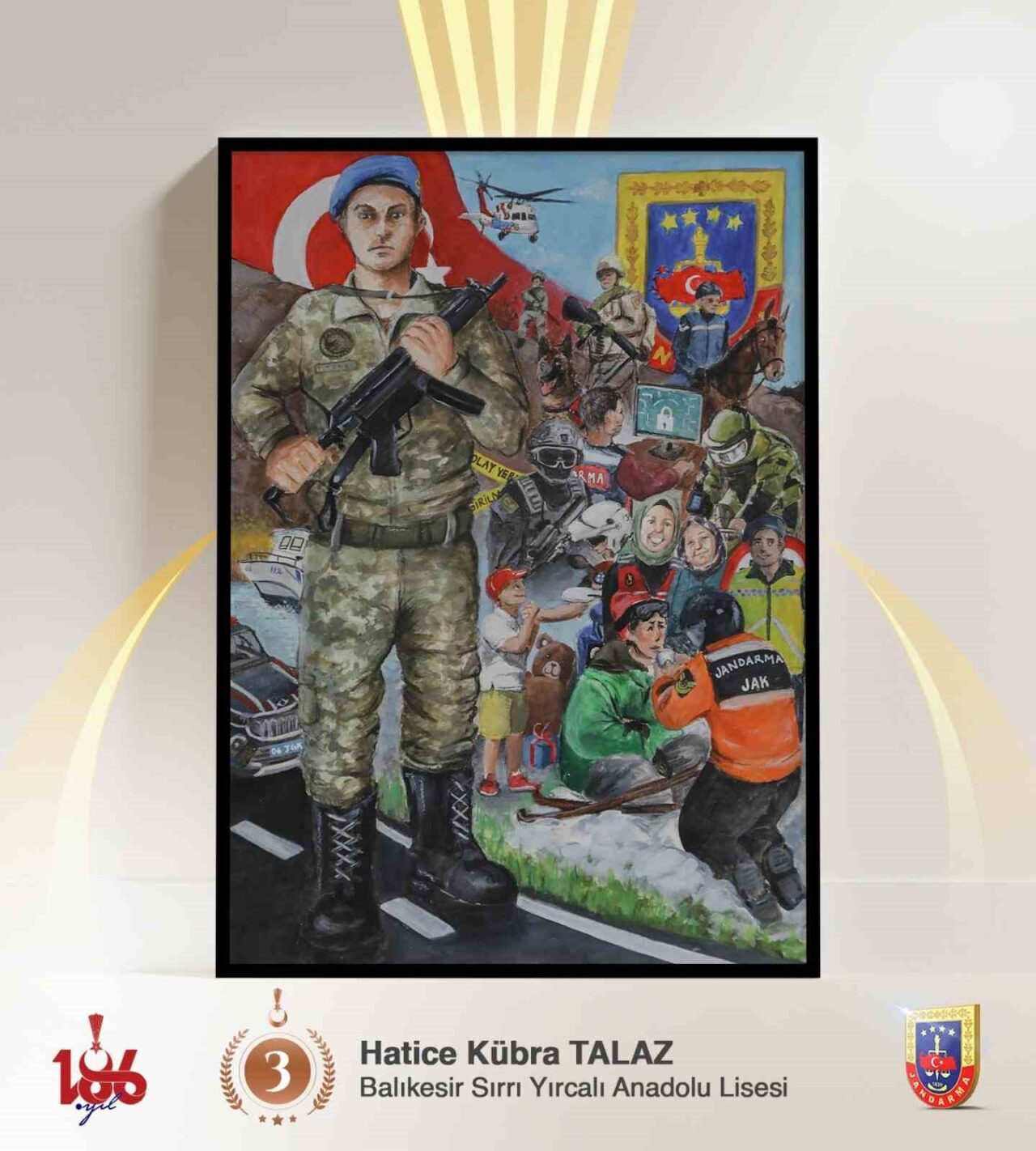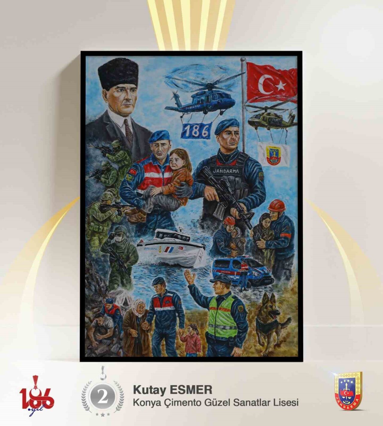 GENÇLERİN GÖZÜNDEN JANDARMANIN KAHRAMANLIK VE FEDAKÂRLIK DOLU HİKÂYESİNİ YANSITAN, “186’NCI YILINDA JANDARMA” TEMALI LİSELER ARASI RESİM YARIŞMASINDA ERZİNCAN GÜZEL SANATLAR LİSESİ ÖĞRENCİSİ BEYZA NUR ALBAYRAK BİRİNCİ OLDU.