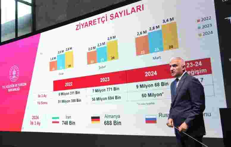 Turizm gelirlerinin totaline baktığınızda ise 2023’te ilk 3 ay 8.3 milyar dolar olarak revize edildi. 2024 gerçekleşmesi 8.8 milyar dolar olarak netleşti. Geçen seneki yıl sonu da 55.9 olarak düzeltildi. Geriye dönük 2017’ye kadar rakamlarda değişiklikler var. Bu seneki hedefimizin de 60 milyar dolar gelir olduğunu düşünürseniz, ilk çeyrek raporlardan hedefimizle uyumlu bir şekilde ilerlemeyi görebiliyorsunuz.”