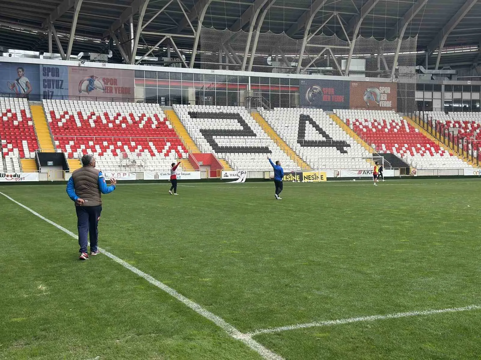 Şehir stadında yapılan çift kale antrenmanda, yoğun yağmur altında çalışan Erzincansporlu futbolcular, teknik direktör Yılmaz Toyran yönetiminde morallerini yüksek tutmaya çalıştı.