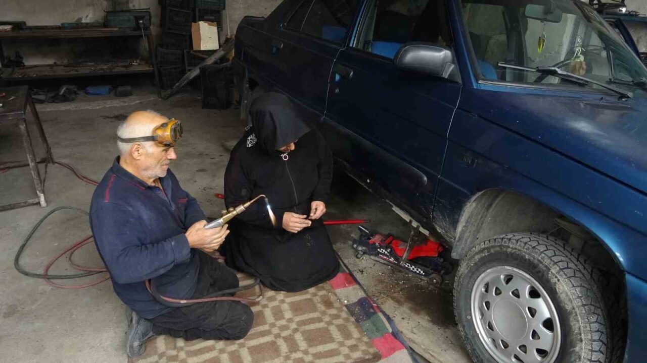 Bayburt’ta yaşayan 59 yaşındaki Hatice Kırlangıç, 40 senedir aynı yastığa baş koyduğu 64 yaşındaki eşi Mehmet Kırlangıç ile beraber 25 yıldır oto kaportacılığı yapıyor. Kalp ameliyatı olan, bel fıtığı tedavisi gören eşini yalnız bırakmayan, sanayinin tek kadın çırağı Hatice Kırlangıç, gençlere seslenerek, “Eşinizi ilk yokuşta bırakıp kaçmayın, destek olun. Hayat müşterektir” dedi.