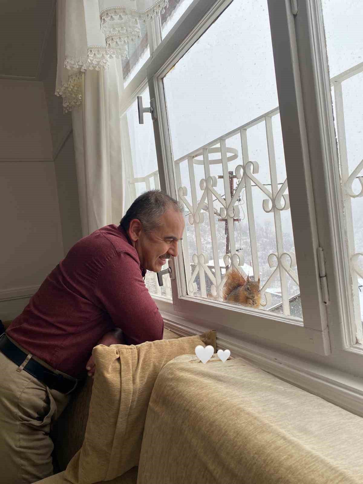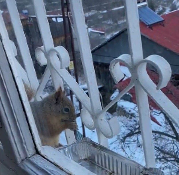 Taşdibi Mahallesi’nde aç kalan sincaplar, mahalle sakinlerinin pencerelerine misafir oluyor. Mahalle sakinlerinden Selami Bozkurt, sincapları Eğin dutu ve cevizle besleyerek onlara kış boyunca destek oluyor.