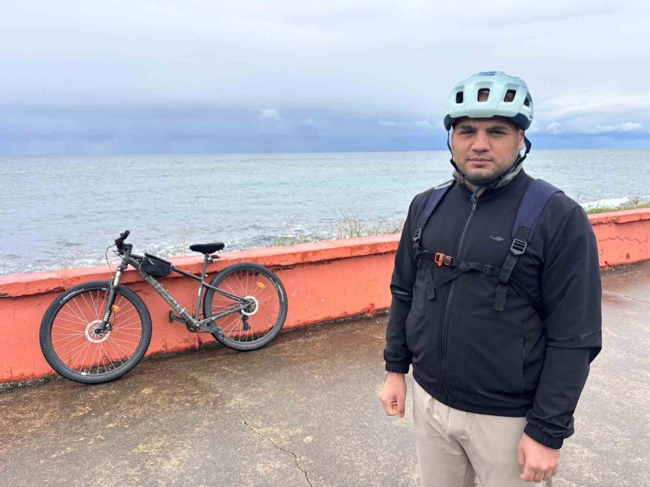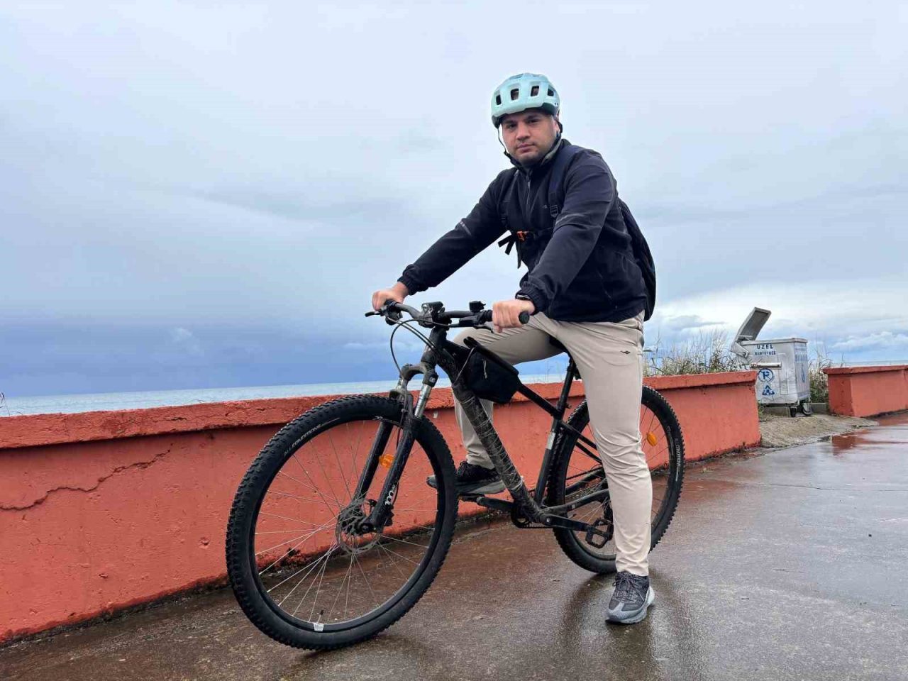 Yol boyunca bir tarafın mavi diğer tarafın yeşil olmasının güzel hissettirdiğini kaydeden Gürel, “Burası bir sahil ilçesi ama 2 kilometre ötesi hep yükselti başlıyor. Dağlık bir alan. Sahil boyu gezdikten sonra içeri girsek yüksel engebe, çukur, tepe başlıyor. Ona uygun bir bisiklet almak istedim. Hava koşulları zorlu oluyor ancak bisiklet sürmemize engel olmuyor. Bisikletin jantı kara uygun. Karda zorlanmıyorum. Mekanik bir alet tamiri kolay. Bazen yolculuklarım 4-5 saat sürebiliyor. Zirveye çıktığım zaman sahile iniş gerçekleştiriyorum. İnişler 1-2 saat sürüyor. Yolda çok fazla yaban hayvanı ölülüleri ile karşılaşıyorum. Yoldayken trafikte renkli görüntüler görüyorum. Yol boyunca bir tarafın mavi bir tarafın yeşil olması çok güzel hissettiriyor. Bu bölge çok sulak bir alan. Yol boyunca şelaleler, deniz manzarası ve dereler güzel manzaralar oluşturuyor” şeklinde konuştu.