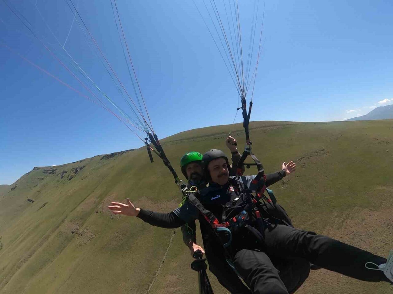 Yamaç Paraşüdü Tandem Pilotu Bayram Yücel eşliğinde; Erzurum Valisi Mustafa Çiftçi, Yakutiye Kaymakamı Tuncay Kaldırım, İl Kültür ve Turizm Müdürü Ahmet Yer de yamaç paraşütü ile zirveden heyecan dolu atlayışlar gerçekleştirdi. Vali Çiftçi, Ekonomik İş Birliği Teşkilatı Ülkeleri 2025 Turizm ve Avrupa Kış Sporları Başkenti Erzurum’da her türlü sporun yapılabileceğini göstermek amacıyla bir dizi etkinliğe imza attıklarını vurgulayarak, “Uçuşumuz Çoban Dede Tabyası’nda başladı. Bir kuş gibi süzülerek ovaya indik. Yamaç paraşütü oldukça heyecanlıydı. Ama hocamız bu anlamda çok deneyimli. Yükseklik korkumu da bu sayede yenmiş oldum” şeklinde konuştu.