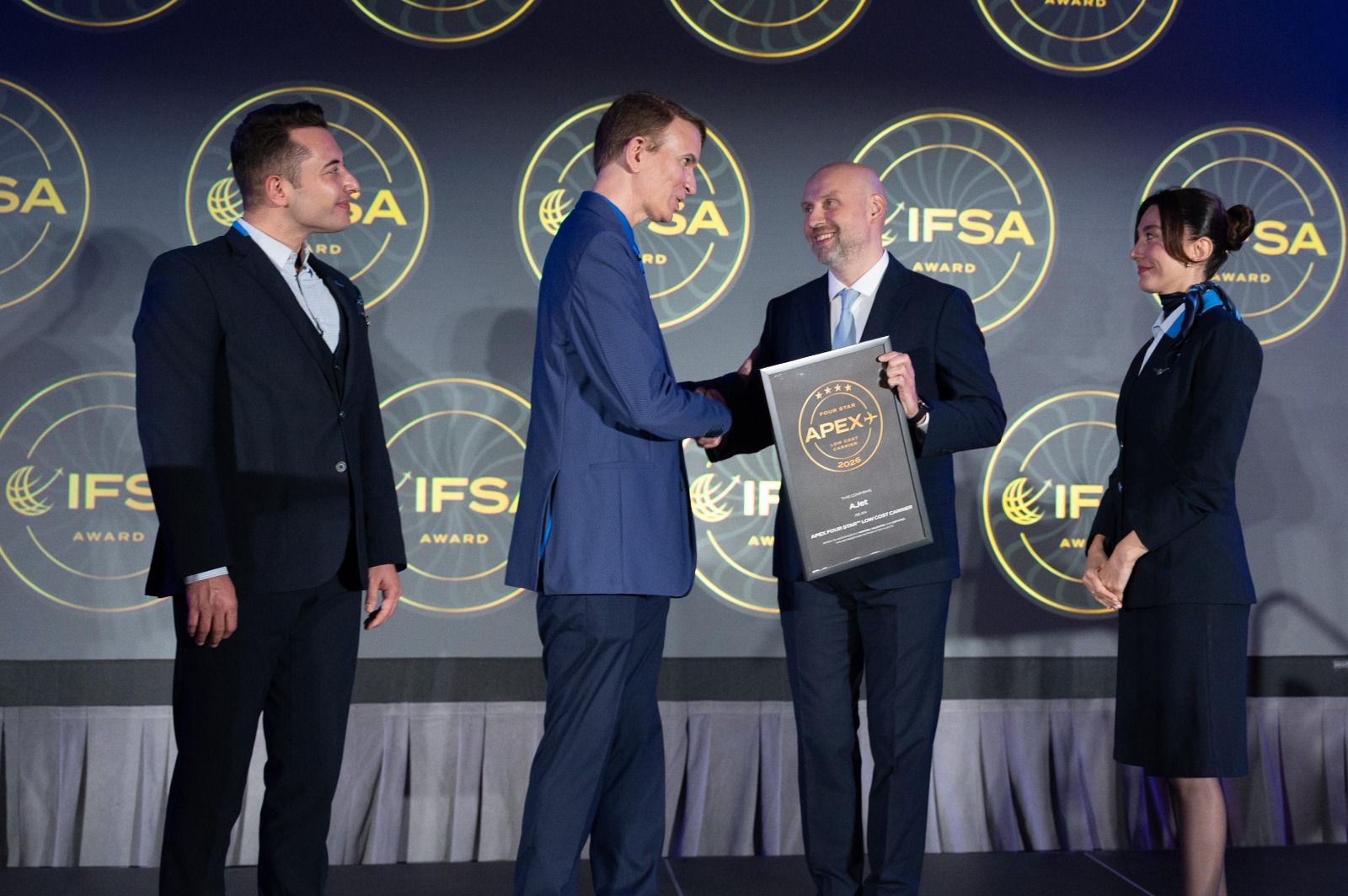 Ödül, ABD’nin Los Angeles kentindeki APEX/IFSA Global Expo fuarında yapılan törenle, APEX/IFSA CEO’su Dr. Joe Leader tarafından AJet Genel Müdür Yardımcısı Cemal Kaya’ya takdim edildi. AJet, geçtiğimiz yıl, kuruluşunun henüz 7. ayında iken yine APEX’in “Dört Yıldızlı Düşük Maliyetli Havayolu” ödülüne hak kazanmıştı.
