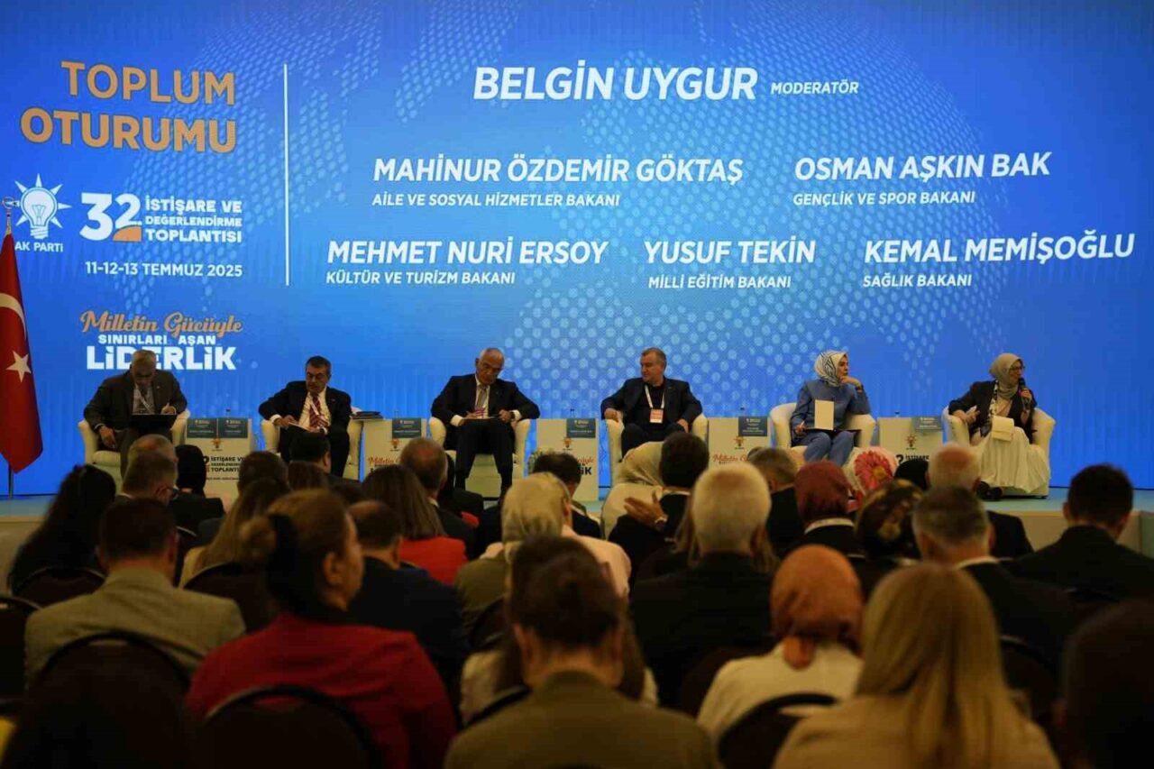 Cumhurbaşkanlığı Kabinesi’nin bakanları, 32. AK Parti İstişare ve Değerlendirme Toplantısı kapsamında toplum, güvenlik, kalkınma ve ekonomi başlıklarında gerçekleştirilen oturumlarda milletvekillerinin ve parti üyelerinin sorularını cevapladı, taleplerini dinledi.