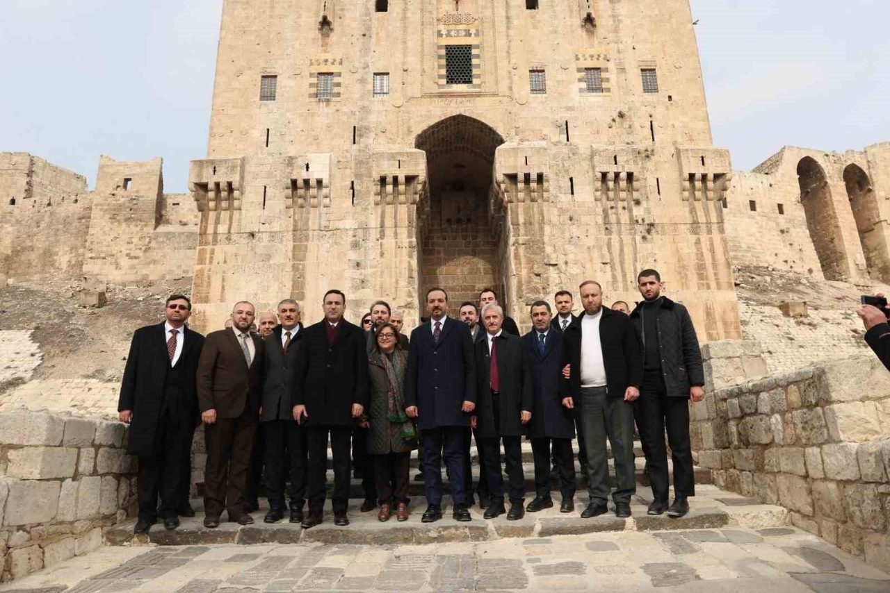 Bozgeyik, “Halep’in tarihi ve kültürel yerlerini de ziyaret ettik. Tarihi Hz. Zekeriya Camiinin restorasyon çalışmalarını yerinde gördük. Maneviyatın her adımda hissedildiği bu kadim coğrafyada, bu mübarek camide bulunmak gönüllerimizi huzurla doldurdu. Yine Halep’te tarihin susmadığı, ecdadın mührünü taşıyan Halep Kalesi’ni ziyaret ettik. Bu kadim surların gölgesinde, hangi topraklar için, hangi değerler uğruna asırlar boyunca bedel ödendiğini; Suriye meselesini neden hem masada hem sahada kararlılıkla savunduğumuzu bir kez daha derinden hissettik. Ecdadımızın aziz hatırası önünde saygıyla eğilerek, birlik ve beraberliğimizin ilelebet daim olması için dua ettik” diye konuştu.
