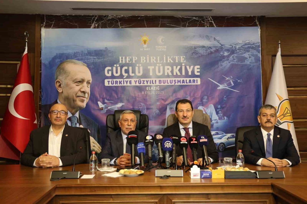 Türkiye Yüzyılı Buluşmaları kapsamında, AK Parti Genel Başkan Yardımcısı ve Seçim İşleri Başkanı Ali İhsan Yavuz’un katılımıyla AK Parti Elazığ İl Başkanlığında toplantı yapıldı. Toplantıya, Genel Başkan Yardımcısı Yavuz’un yanı sıra AK Parti Elazığ Milletvekilleri Prof. Dr. Erol Keleş ve Ejder Açıkkapı, Belediye Başkanı Şahin Şerifoğulları, AK Parti Elazığ İl Başkanı Şerafettin Yıldırım ile gazeteciler katıldı. Toplantıda konuşan AK Parti Genel Başkan Yardımcısı Yavuz gündeme dair önemli açıklamalarda bulundu.