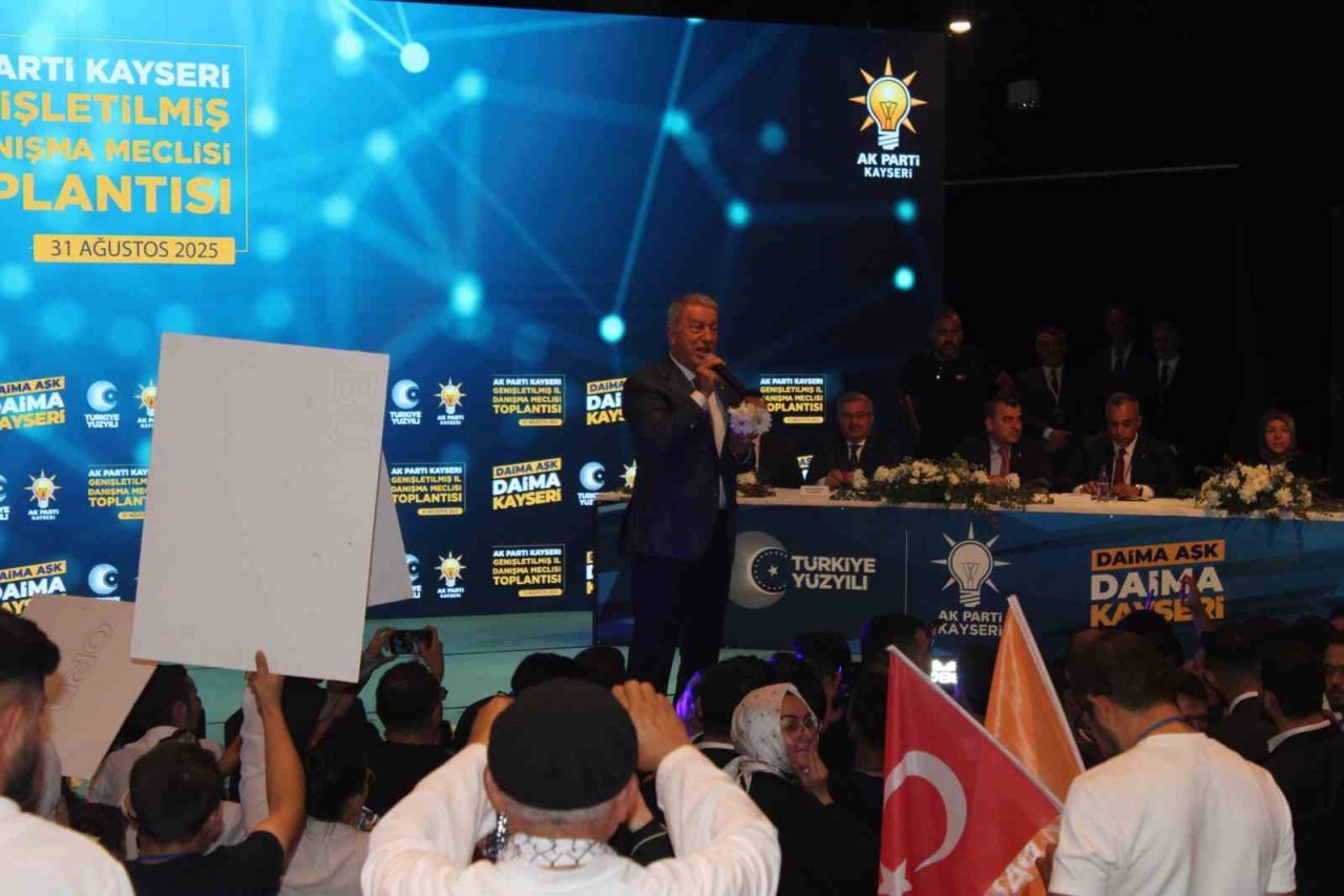 Toplantıda konuşan TBMM Milli Savunma Komisyonu Başkanı ve AK Parti Kayseri Milletvekili Hulusi Akar; terörsüz Türkiye’nin önemine değinerek çalışmaların hem sahada hem masada devam ettiğini kaydetti. Akar; “Cumhur İttifakı olarak MHP Genel Başkanı Devlet Bahçeli ile birlikte ülkemizin bekası ve refahı için gece gündüz demeden çalışmaya devam ediyoruz. Ordumuz; yıllardan beri başımıza bela olan terör belasından asil milletimizi kurtarmak için büyük bir mücadele verdi. Türk silahlı Kuvvetleri; erinden generaline kadar bir bütün, ölürsek şehir kalırsak gazi anlayışıyla büyük bir mücadele verildi. Hem de 15 Temmuz hain darbe girişiminden sonra. Öncelikle Fırat Kalkanı, Zeytin Dalı, Barış Pınarı Harekatları yapılmak suretiyle teröristler kazdıkları çukurlara gömüldüler. Pençe Harekatlarıyla Irak’ın kuzeyinde bütün barınakları, sığınakları başlarına yıkıldı. Kim ne yaparsa yapsın, arkalarında kim olursa olsun onlara bakmaksızın gerekli cevap verildi, verilmeye devam ediyor. Türk Silahlı Kuvvetleri şuanda sahada çalışmalarını sürdürüyor. Diğer taraftan da masada terörsüz Türkiye için yapılması gereken ne varsa yapılıyor. Terörsüz Türkiye taviz değil, pazarlık değil, almak-vermek değil. Terörün bitirilmesi için yapılacak ne varsa yapılmaya devam ediliyor. Sahadaki varlığımız devam ederken diğer taraftan da çalışmalar yapmak suretiyle bu terör belasına son vermek için milletimiz gayret gösteriyor. Bunda hiçbir şekilde alınacak taraf yok; şehitler gelmesin, analar ağlamasın. Amacımız, gayemiz bu. Biz hiçbir zaman terörü, teröristi unutmadık fakat terörün de bitmesi lazım. Bunun için hem sahada hem masada çalışmalarımızı sürdürüyoruz” ifadelerini kullandı.