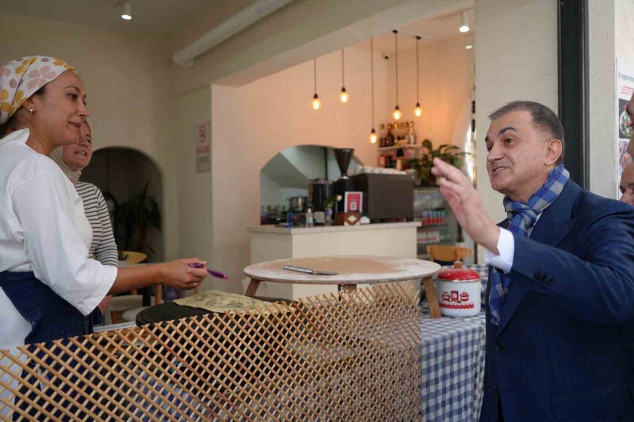 Çelik, kısa konuşmasının ardından gençlerin arasına girerek, onların düşüncelerini dinledi. Ömer Çelik’in motorcu ve gözleme yapan kadın esnaflarla diyalogları ise dikkat çekti.