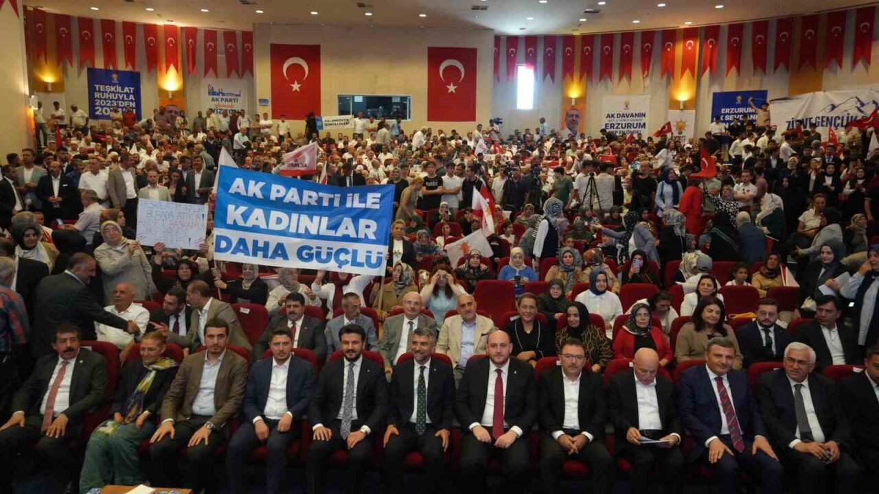AK Parti Genel Başkan Yardımcısı ve Teşkilat Başkanı Ahmet Büyükgümüş, Cumhurbaşkanı RecepTayyip Erdoğan’ı bir kez daha cumhurbaşkanı seçerek yola çok daha kararlı bir şekilde devam edeceklerini belirterek, “Onun için sürekli Erzurum’da ayakta dimdik olacağız, teyakkuz halinde olacağız. Bu davayı tüm gönüllere, zihinlere inşallah bu enerjiyi de kararlılıkla taşıyacağız. Ortaya koyacağımız çalışmalarımızla 2028 yılında ve ardından 2029’da güçlü çıkacağız. Nasıl 2002’de partimizi iktidara taşıdığımız anda işte 2023’ün kapıları bizlere aralanmışsa, bu kutlu kadro hizmet ve eser siyasetiyle Anadolu’yu kuşatmışsa, şimdi de inşallah şu yaklaşan seçimler çok önemli. Dünyaya mesaj vermek için çok önemli. Büyük ve güçlü Türkiye davasını hakim kılmak için çok önemli. Ve inşallah burada alacağımız güçlü kararının neticeyle Recep Tayyip Erdoğan’ı bir kez daha cumhurbaşkanı seçerek 2053’ün kapılarını hep birlikte alacağız” dedi.