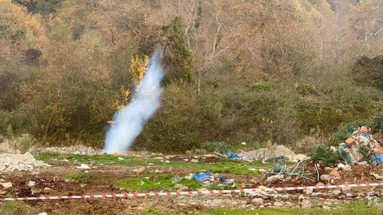 Zonguldak’ın Alaplı ilçesine bağlı Sarıkadı köyünden geçen BOTAŞ’a ait doğalgaz boru hattı, bölgede çalışma yapan iş makinesinin hatta temas etmesi sonucu patladı.