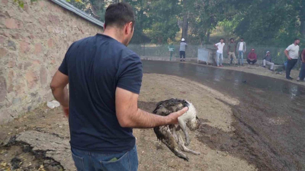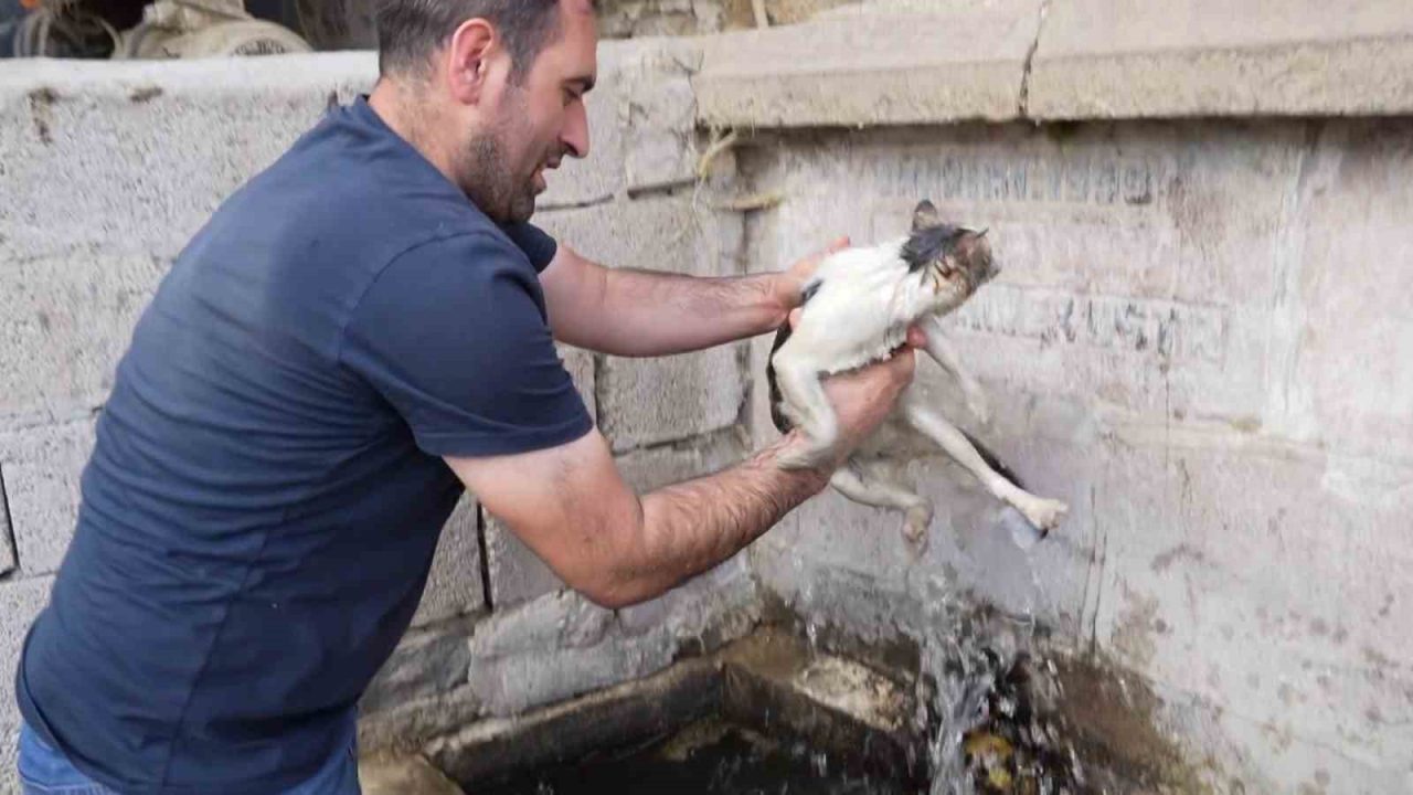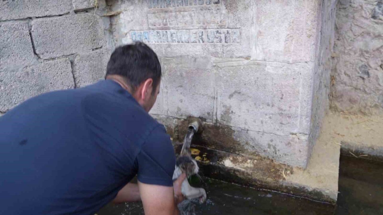 YARI BAYGIN KEDİYİ ÖNCE SU İLE BULUŞTURMAK İÇİN KOŞTURAN MUHARREM KARAHAN, KIRMIZITAŞ KÖYÜNÜN ÇEŞMESİNDE KEDİYE ADETA CAN SUYU VERDİ. BİRKAÇ ÇEŞMENİN SOĞUK SUYUNA BATIP ÇIKARILAN KEDİ, KENDİNE GELİNCE KAÇARAK KAYIPLARA KARIŞTI.