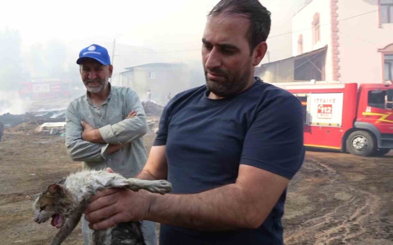 Erzurum’un Yakutiye ilçesine bağlı Kırmızıtaş Mahallesi’nde meydana gelen yangında alevler içinde kalan kediye şefkat eli uzandı.