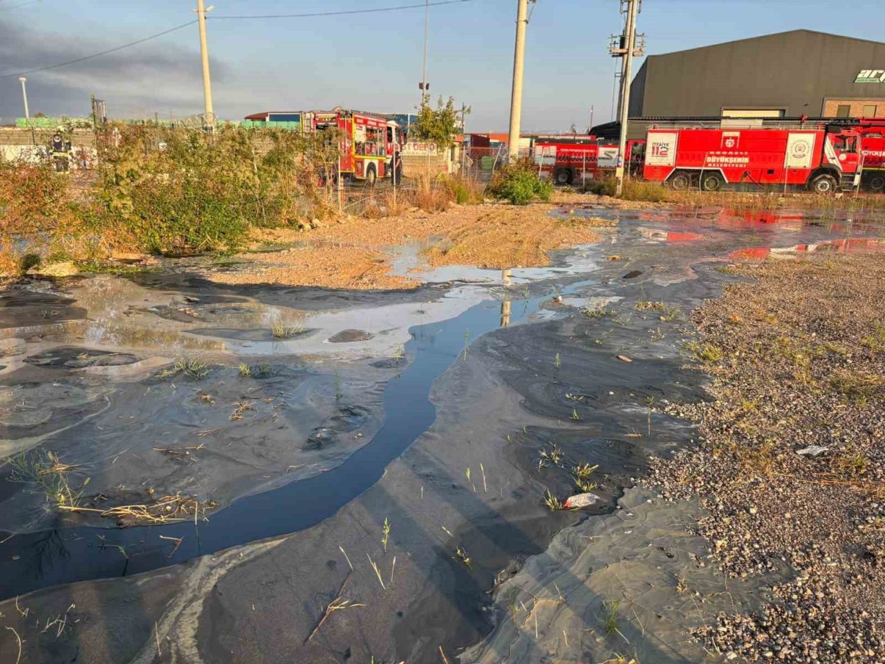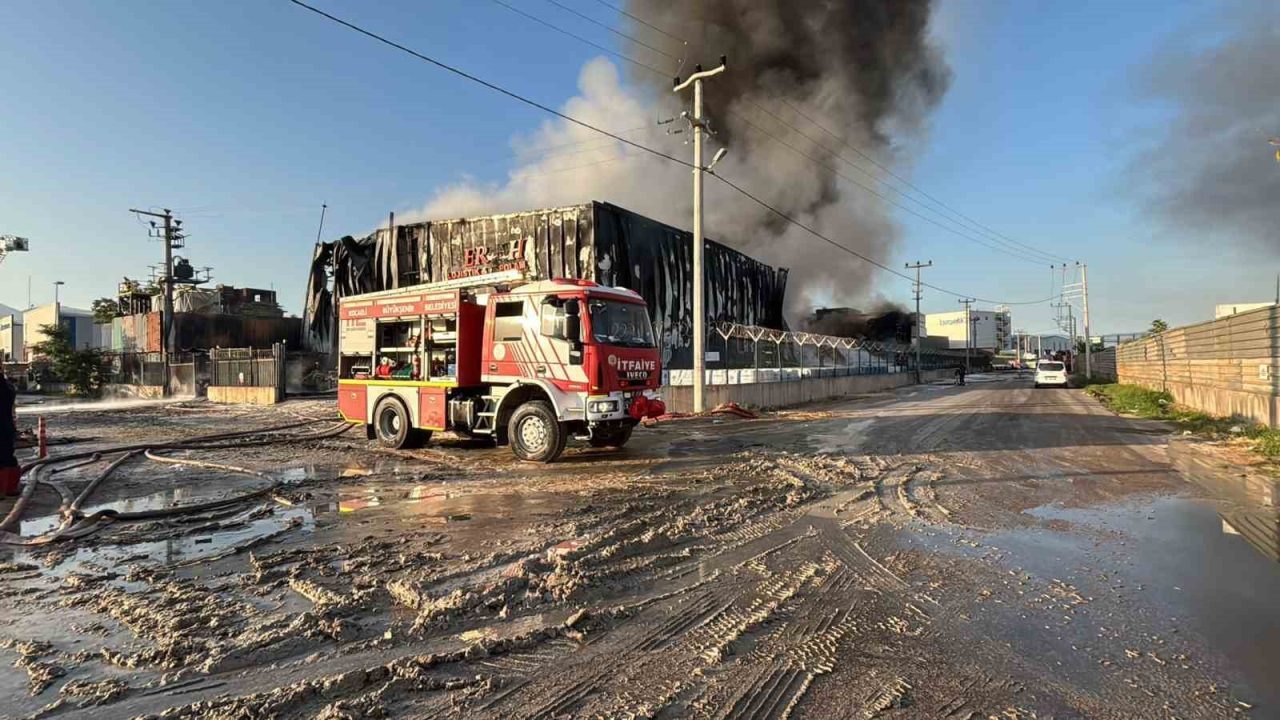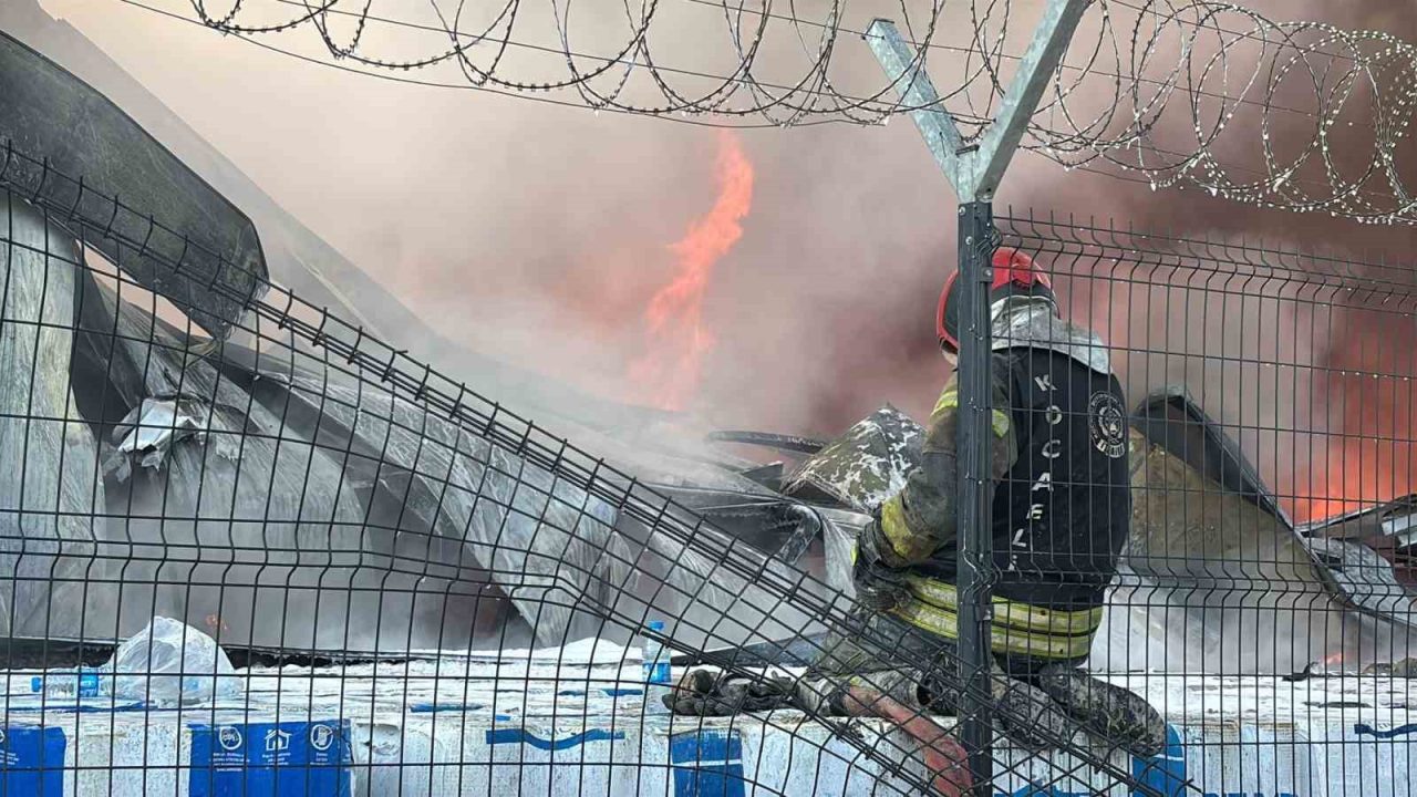Yangın, 3 saatlik müdahalenin ardından kontrol altına alındı. Ekipler depoda soğutma çalışması gerçekleştiriyor.