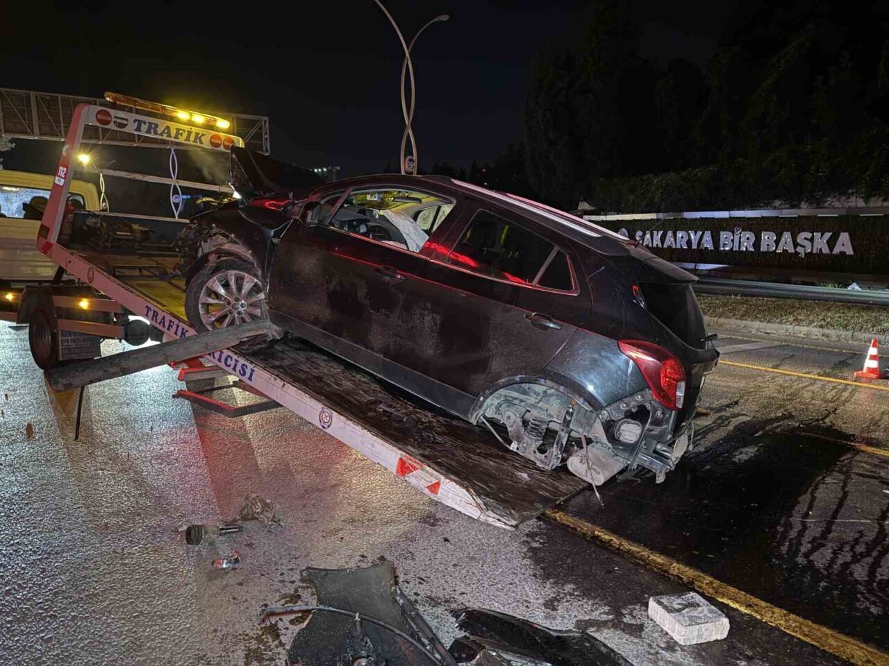 SAKARYA’NIN ADAPAZARI İLÇESİNDE ALKOLLÜ SÜRÜCÜNÜN KULLANDIĞI SUV TARZI ARAÇ KONTROLDEN ÇIKARAK REFÜJÜ AŞIP KARŞI ŞERİDE GEÇTİ. AYDINLATMA DİREĞİ, AĞAÇ VE TABELANIN DEVRİLDİĞİ KAZADA SÜRÜCÜ YARALANDI.