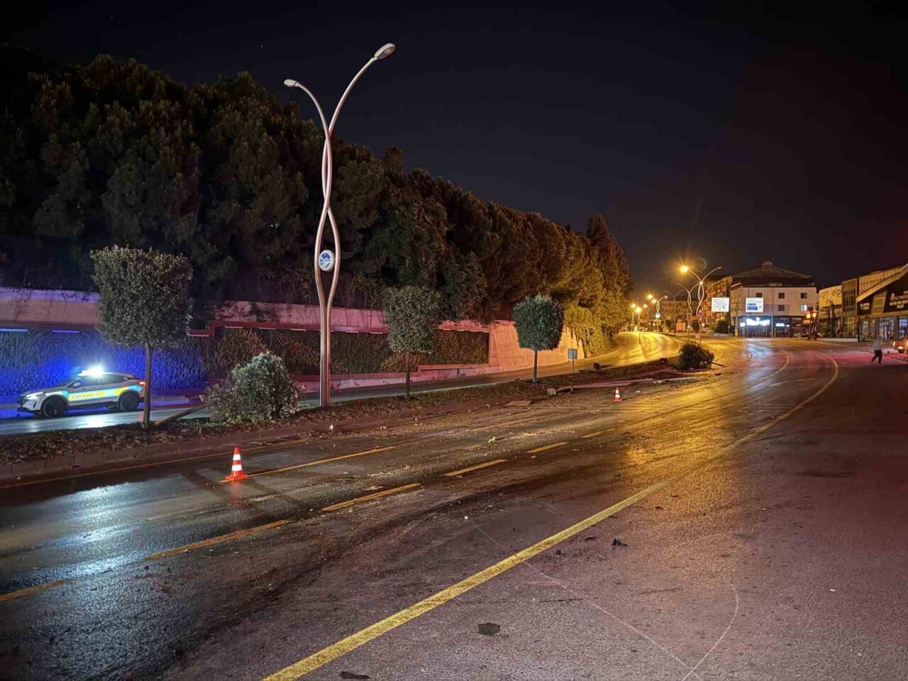 Kaza, Adapazarı ilçesi Orhangazi Caddesi üzerinde meydana geldi. Edinilen bilgilere göre, alkollü olan A.K. (61) idaresindeki 54 LG 281 plakalı SUV tarzı araç, sürücüsünün direksiyon hakimiyetini kaybetmesi neticesinde kontrolden çıkıp refüjdeki aydınlatma direği, ağaç ve bilgilendirme tabelasını devirdikten sonra karşı şeride geçti. Kazanın etkisiyle araçta maddi hasar meydana gelirken, sürücü yaralandı. Olay yerine sevk edilen sağlık ekiplerinin ilk müdahalesinin ardından yaralı sürücü hastaneye kaldırıldı. Ortalığın adeta savaş alanına döndüğü kazaya ilişkin polis ekipleri inceleme başlattı.