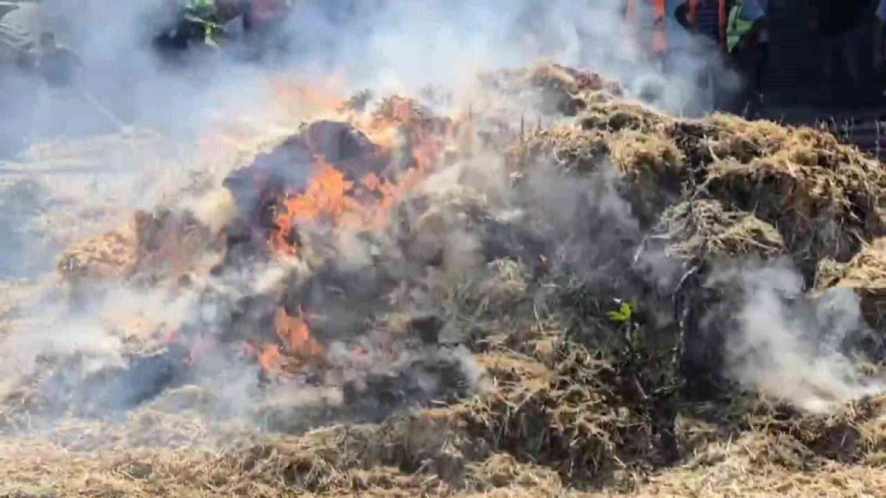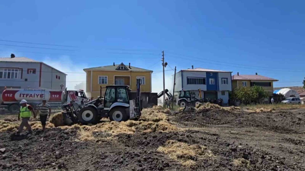 SAMANLARIN TUTUŞTUĞUNUN GÖRÜLMESİ ÜZERİNE İŞ MAKİNELERİ DE MAHALLEYE GÖNDERİLDİ. ÖNCE İÇERİDEKİ BESİ HAYVANLARI ÇEVREDEKİLERİN VE EKİPLERİN ÇABASIYLA, DAHA SONRA DA YAKLAŞIK 20 TON SAMAN İŞ MAKİNELERİNİN DE KULLANILMASIYLA DIŞARI ÇIKARTILDI.