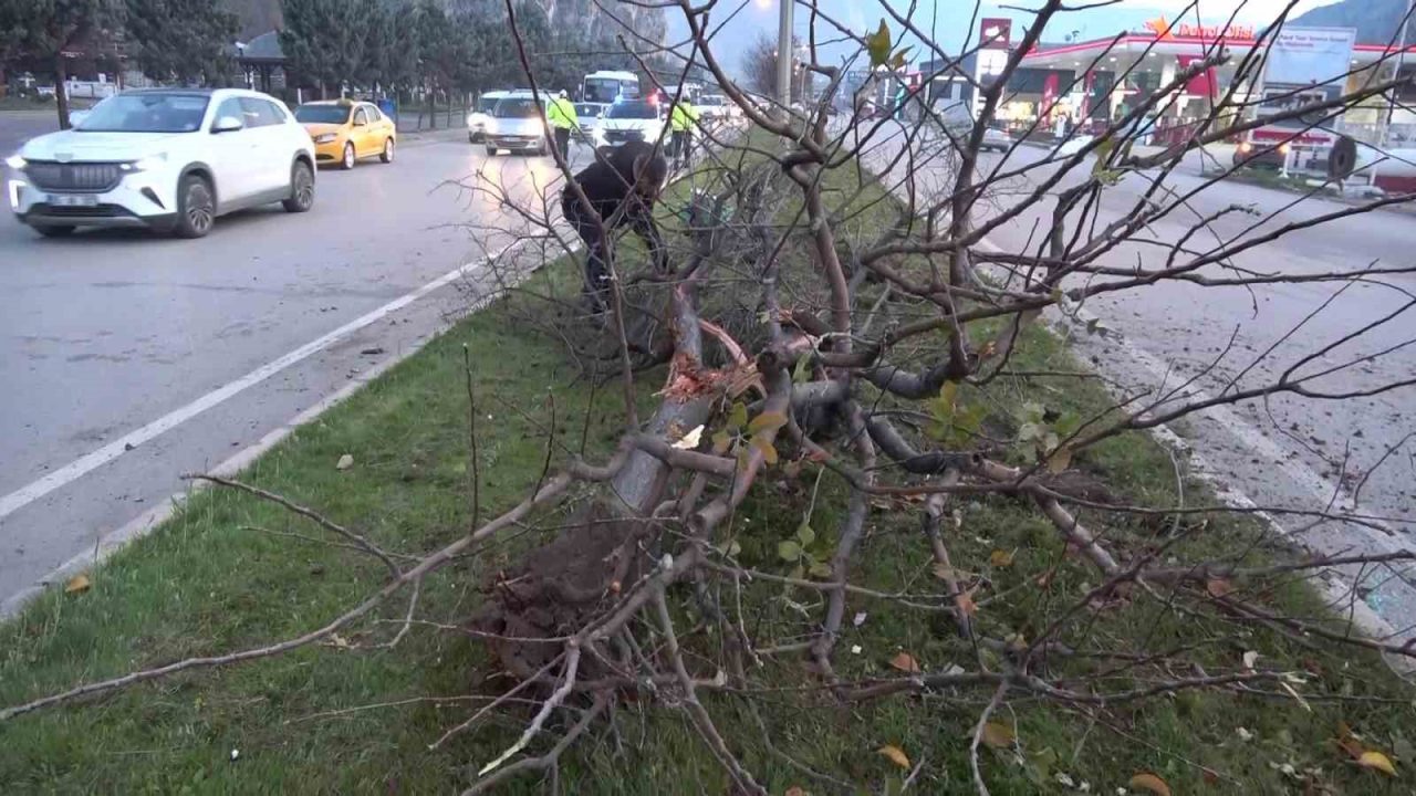 KONTROLDEN ÇIKAN OTOMOBİL REFÜJDEKİ AĞACA ÇARPIP YOLUN KARŞISINA GEÇEREK DURABİLDİ. KAZANIN BİLDİRİLMESİ ÜZERİNE OLAY YERİNE POLİS, ACİL SAĞLIK VE İTFAİYE EKİPLERİ SEVK EDİLDİ.
