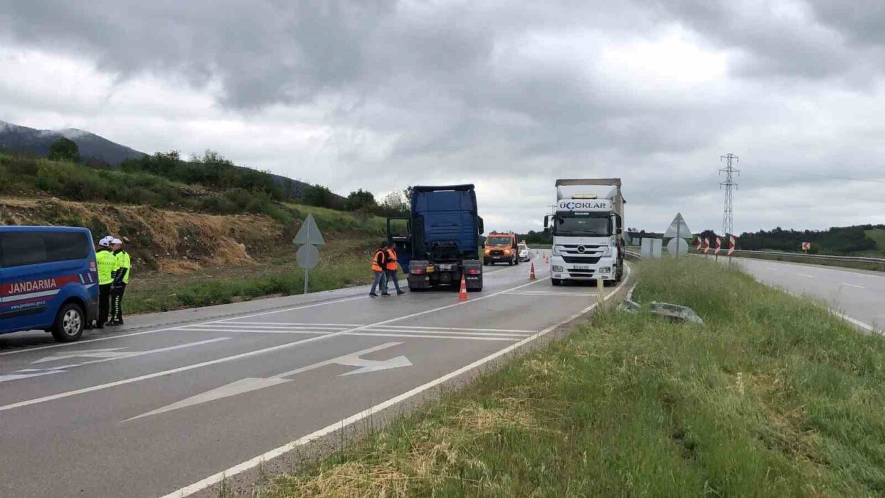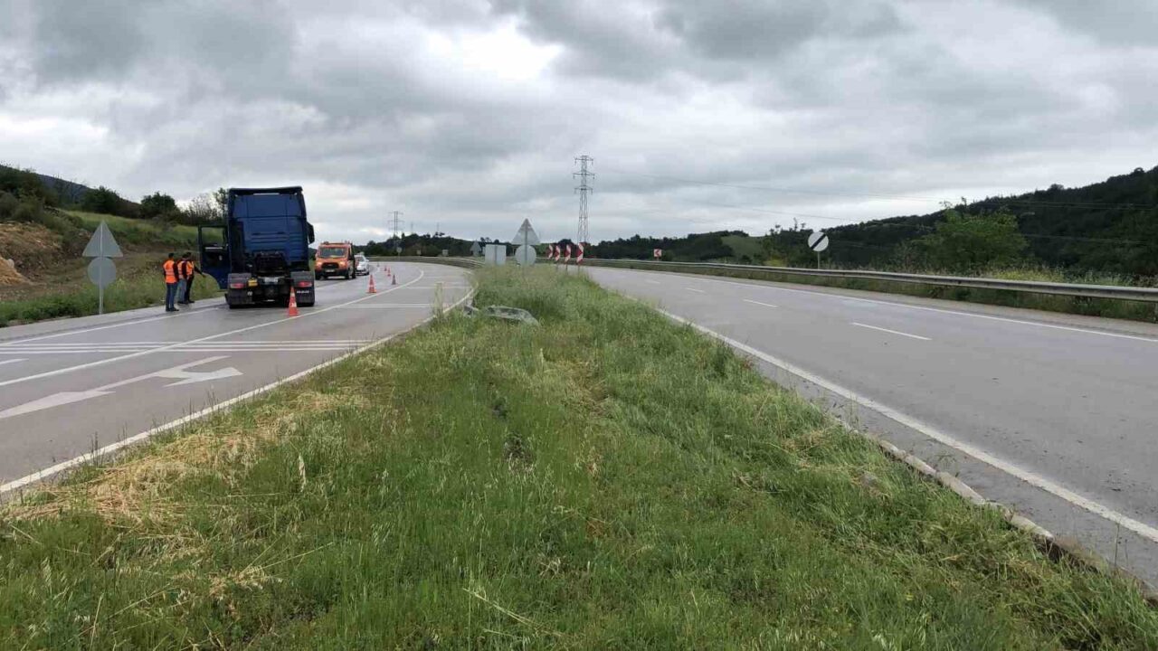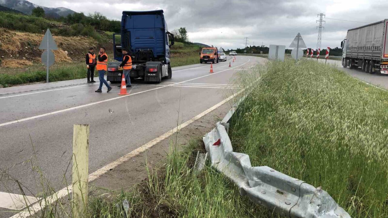 Edinilen bilgilere göre, M.Y.’nin (23) direksiyon hakimiyetini kaybetmesi sonucu DK 1828937 yabancı plakalı tır kontrolden çıktı. Savrulan tır, kendi şeridinden çıkarak refüjü aşıp karşı şeride geçti. Kazada sürücü yaralanırken, olay anında karşı yönden herhangi bir aracın gelmemesi muhtemel bir facinanın önüne geçti.