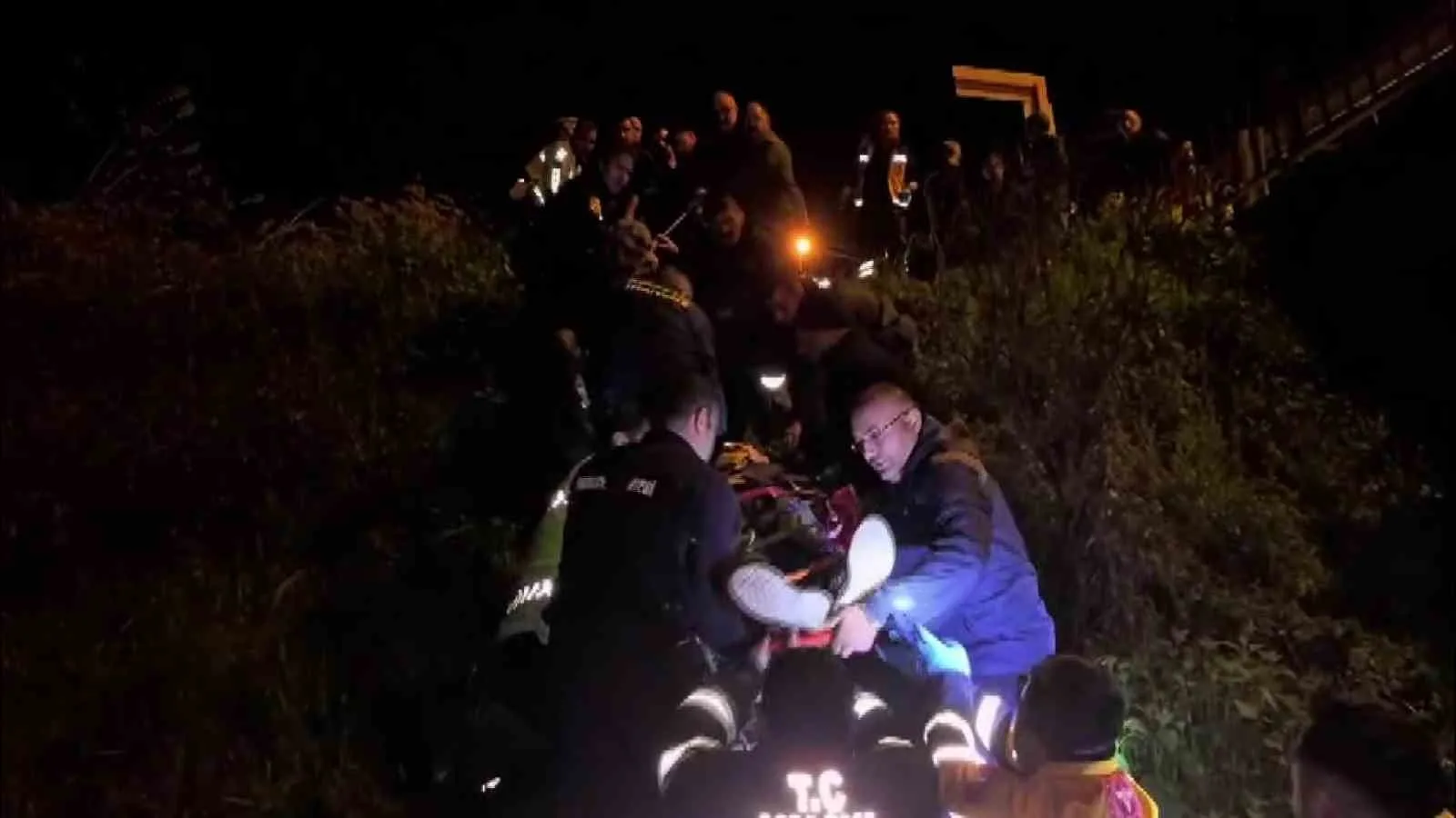 OTOMOBİLDEN ÇIKARTILAN YARALILAR VATANDAŞLARIN DA YARDIMIYLA YUKARI TAŞINIP AMBULANSLARLA HASTANEYE KALDIRILARAK TEDAVİ ALTINA ALINDI.