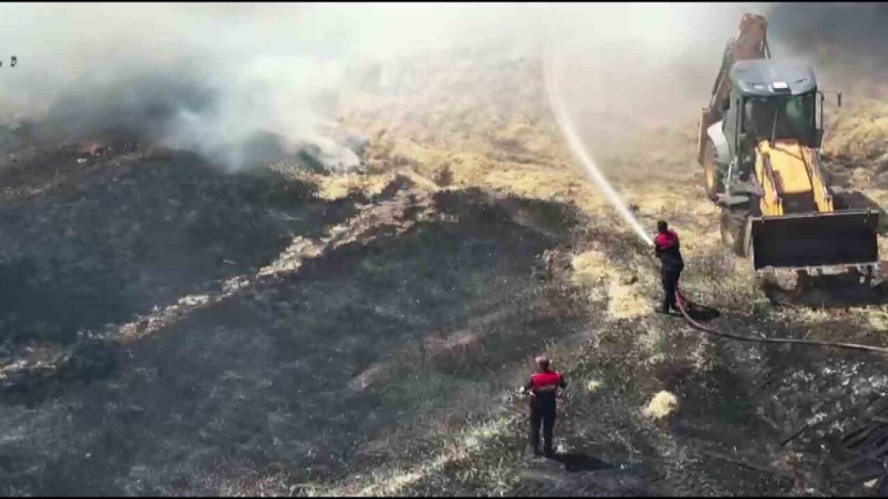 Amasya’nın Merzifon ilçesinde çıkan yangında yaklaşık 500 dönüm tarım arazisi yandı. Yangında bir ahır ve traktör alevlerden zarar gördü. Yanan alan havadan görüntülendi.