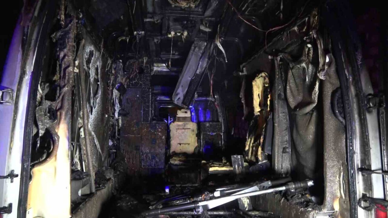 Ambulansı saran alevlere itfaiye ekipleri müdahale ederek söndürdü. Araç kullanılamaz hale geldi. Olay yerine gelen polis ekipleri de araçta inceleme yaptı.