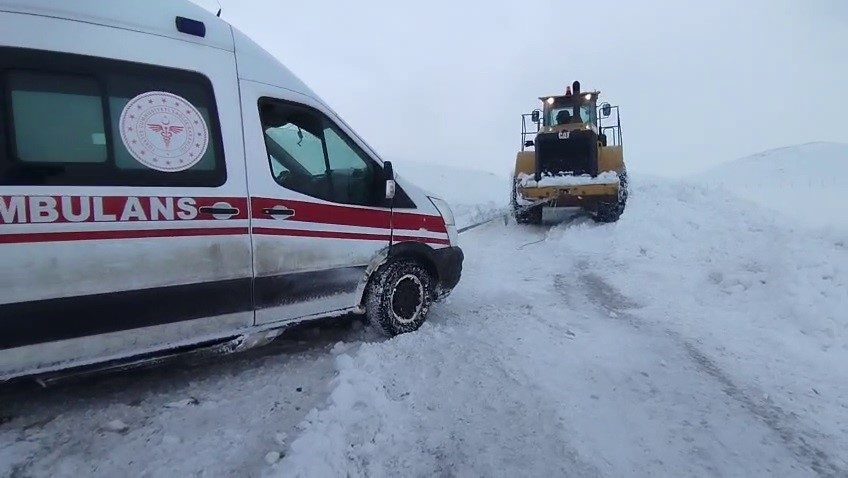 Erzurum’da ilçeye hasta getiren ambulans yolda kaldı. Tekman Belediyesi karla mücadele ekipleri ambulansı kurtararak hastanın ilçeye gelmesini sağladı.