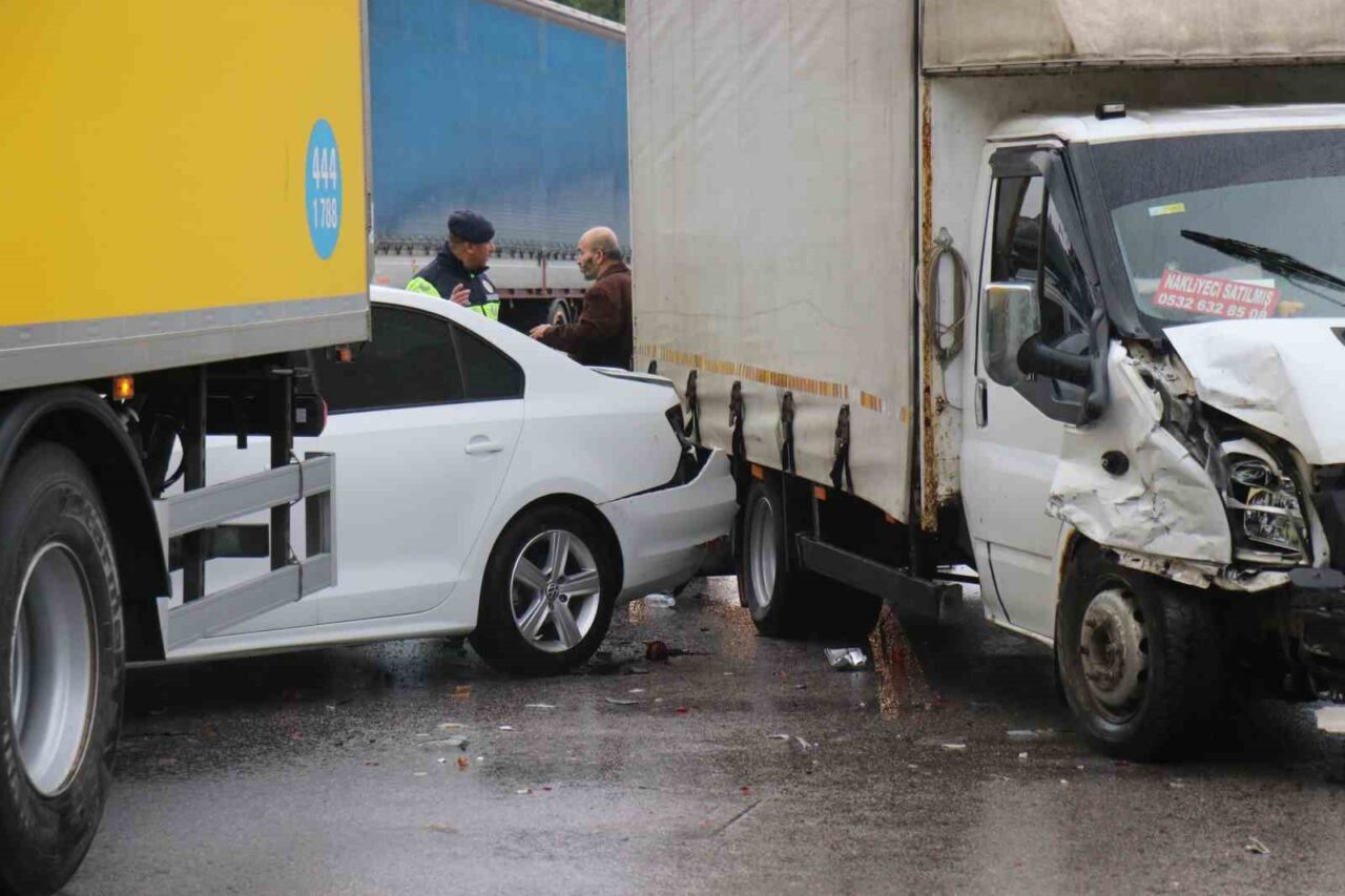 DİĞER KAZA İSE SAPANCA GEÇİŞİNDE MEYDANA GELDİ. ANKARA İSTİKAMETİNDE 2 TIR, 1 HAFİF TİCARİ ARAÇ VE 1 OTOMOBİLİN KARIŞTIĞI KAZADA BİR KİŞİ YARALANDI.