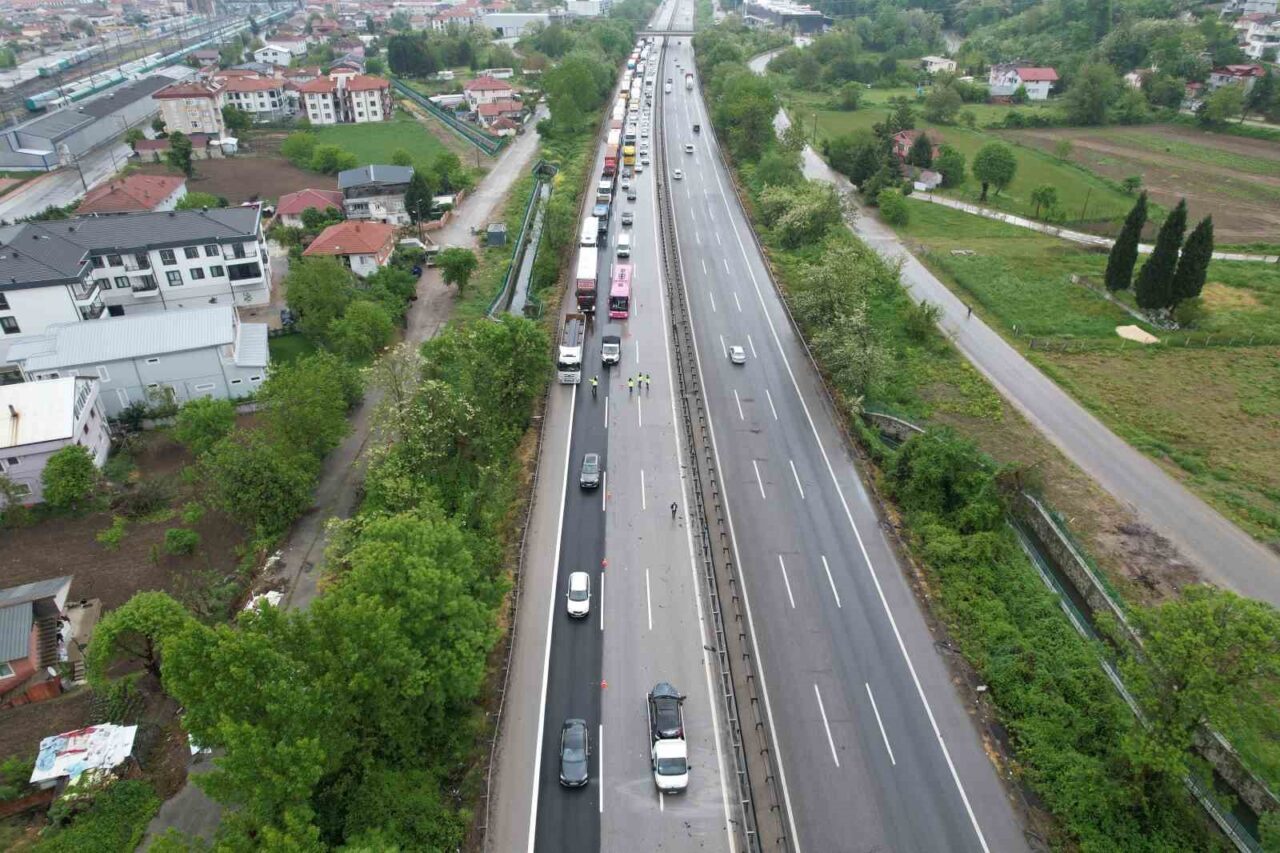 Arifiye geçişi İstanbul istikametinde İ.A. idaresindeki tır, E.B. idaresindeki 54 AAS 321 plakalı Volkswagen marka otomobil, Kasılmış Türker idaresindeki 60 AGC 572 plakalı kamyonet ve Nizamettin Karaçam idaresindeki 67 NK 991 plakalı Fiat marka hafif ticari araç zincirleme kazaya karıştı. Otoyolda meydana gelen kaza ve trafik havadan görüntülendi. Diğer kaza ise Sapanca geçişinde meydana geldi. Ankara istikametinde 2 tır, 1 hafif ticari araç ve 1 otomobilin karıştığı kazada 1 kişi yaralandı.