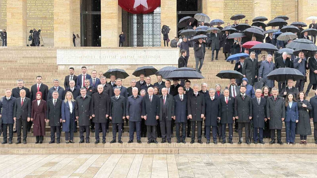HEYET, ASLANLI YOL’DAN YÜRÜYEREK ATATÜRK’ÜN MOZOLESİNE GELDİ. TBMM BAŞKANI KURTULMUŞ’UN MOZOLEYE ÇELENK BIRAKMASININ ARDINDAN SAYGI DURUŞUNDA BULUNULDU VE İSTİKLAL MARŞI OKUNDU.