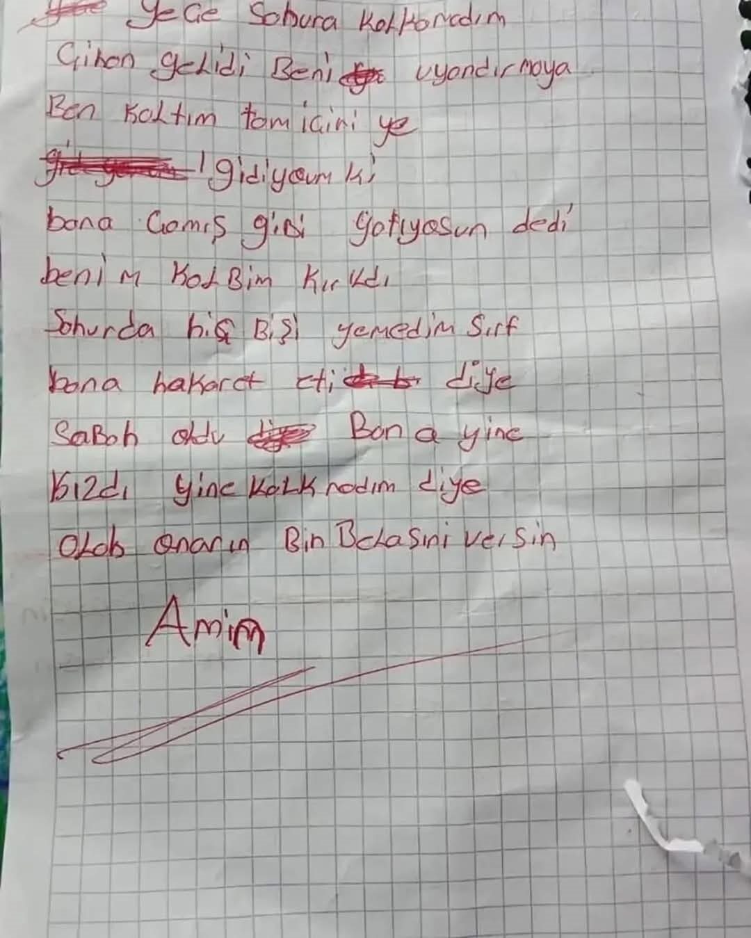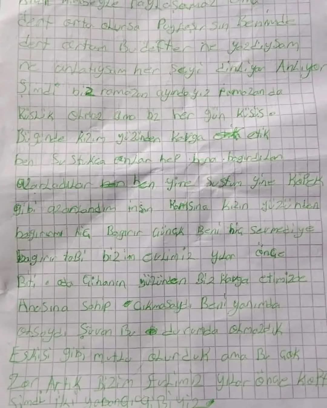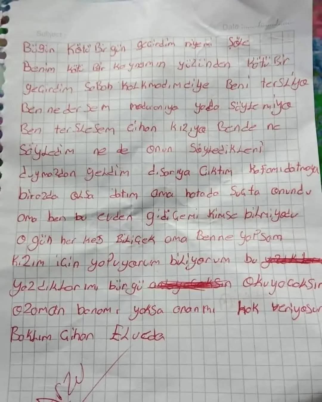 Ordu’nun Çaybaşı ilçesinde Anneler Günü’nde hayatına son veren 20 yaşındaki 1 çocuk annesi kadının, vefatından önce yazdığı notlar ortaya çıktı. Genç kadının, eşi ve kayınvalidesinden gördüğü kötü muamele nedeniyle yaşadığı sıkıntıları kağıda döktüğü öğrenildi.