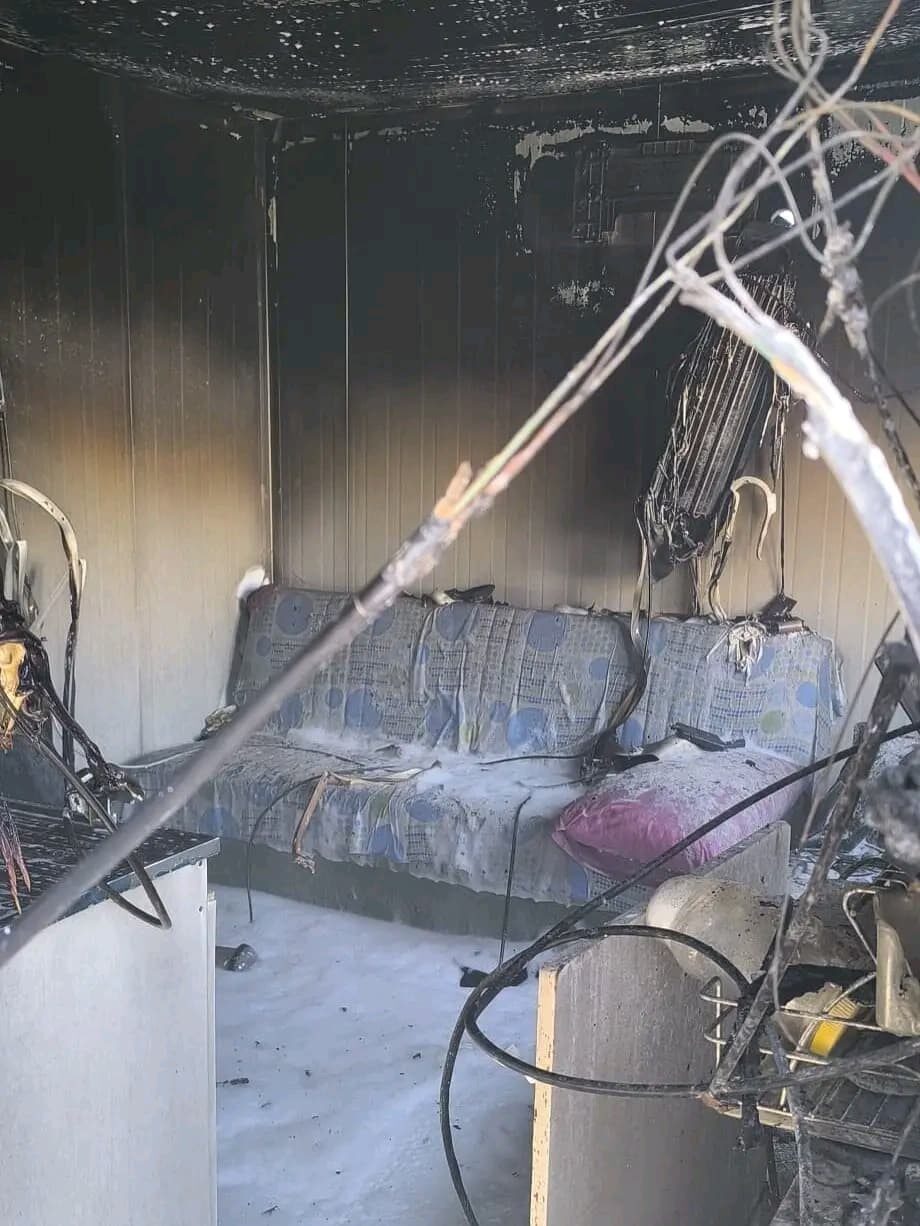 Hatay’ın Antakya ilçesinde depremzede ailenin yaşadığı konteyner yanarak kullanılamaz hale geldi.