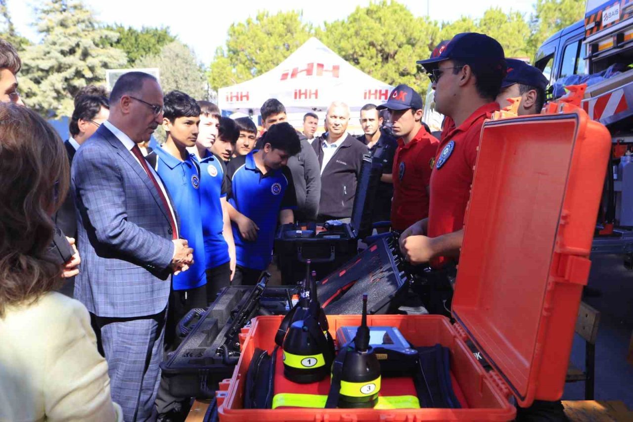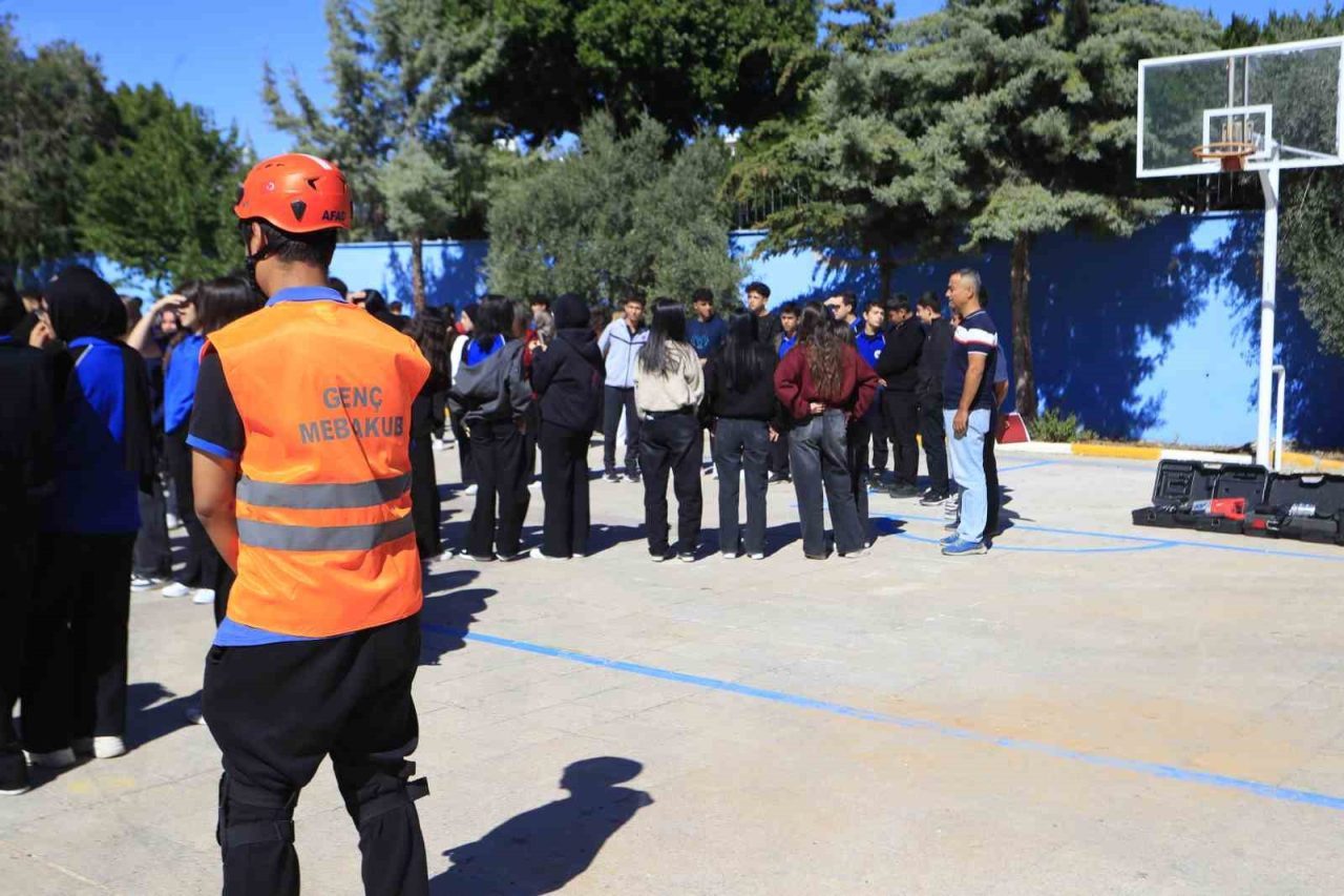 Ekim ayı “Afetler ve Dayanıklılık Ayı” etkinlikleri kapsamında, Antalya’da tüm okullarda eş zamanlı “deprem tahliye tatbikatı” yapıldı. Kepez Hızır Reis Mesleki ve Teknik Anadolu Lisesi’nde düzenlenen tatbikata Antalya İl Milli Eğitim Müdürü Mehmet Yasin Eriş’te katıldı. Eriş, Tatbikat öncesi öğrencilerle birlikte Antalya Büyükşehir Belediyesi İtfaiye Daire Başkanlığı, Jandarma Arama Kurtarma (JAK), Polis Arama Kurtarma (PAK), UMKE, AFAD, Kırmızı Kasklılar Arama Kurtarma ve STK’ların arama kurtarma birimleri tarafından oluşturulan stantları gezdi. Öğrenciler, deprem başta olmak üzere doğal afetlerde arama kurtarma görevlerinde kullanılan ekipmanlar hakkında görevlilerden bilgi aldı.