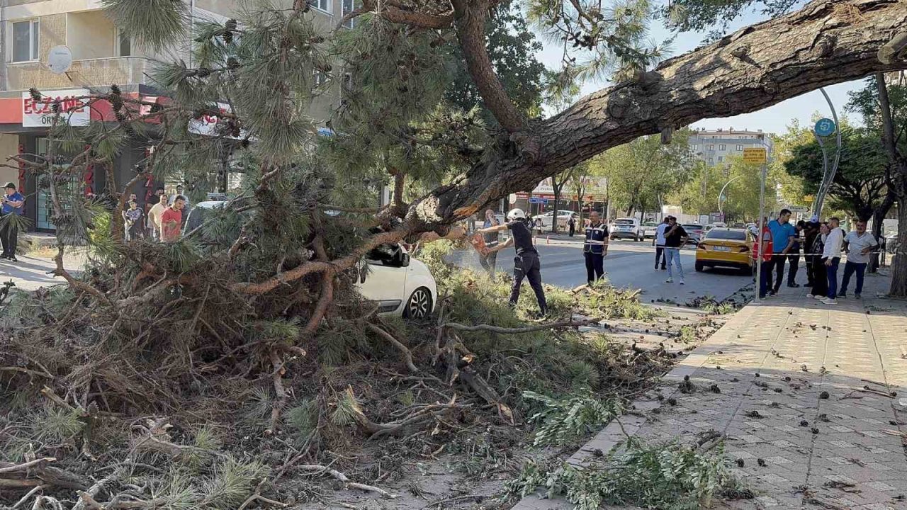 Kocaeli’de etkili olan şiddetli rüzgarda seyir halindeki hafif ticari aracın üzerine ağaç devrildi. Dev ağacın devrildiği Fiat marka araç hurdaya döndü.