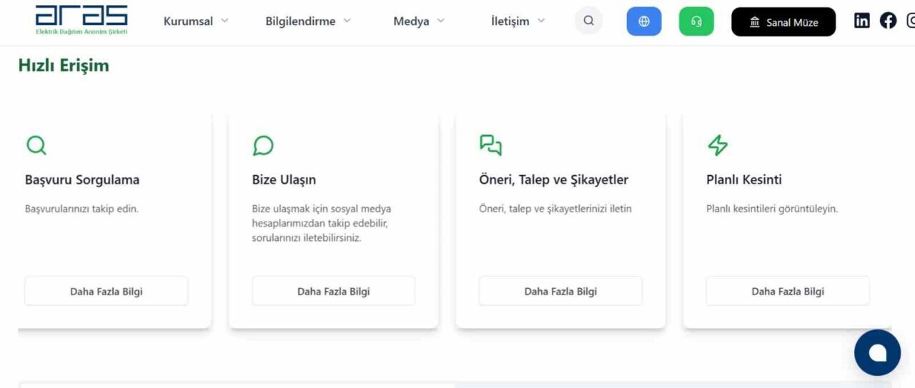 MÜŞTERİ ODAKLI HİZMET ANLAYIŞI VE DİJİTALLEŞME VİZYONUYLA SÜREKLİ GELİŞEN ARAS ELEKTRİK DAĞITIM A.Ş., MODERN TEKNOLOJİLERE UYUMLU, KULLANICI DENEYİMİNİ ÖN PLANDA TUTAN YENİ WEB SİTESİNİ KULLANICILARININ HİZMETİNE SUNDU.