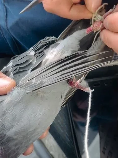 Güvercinin ayağına dolanan ip kesildi ve böylece özgürlüğüne kavuştu.