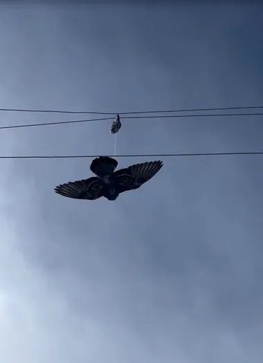 Hanak ilçesine bağlı Selamverdi Mahallesi’nde bilinçsizce ayağına ip bağlanıp bırakılan Güvercin yüksek gerilim elektrik hattına takıldı. Elektrik tellerinde asılı kalan güvercini gören vatandaşlar ihbarda bulundu.