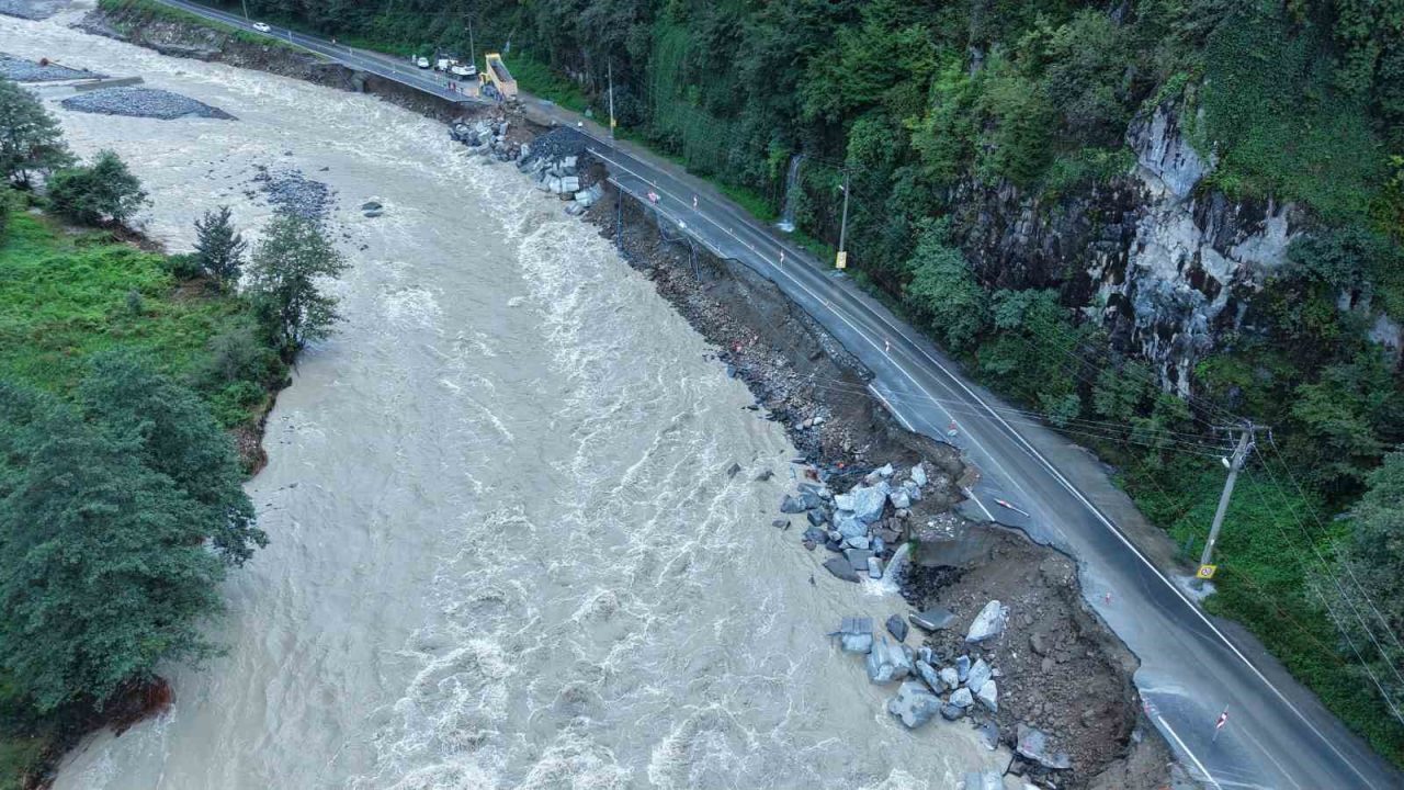 Rize’nin özellikle doğu ilçeleri Ardeşen ve Çamlıhemşin’de iki gündür etkili olan yağmur ile birlikte meydana gelen sel ve heyelanlar hayatı olumsuz etkiledi. Çamlıhemşin-Ardeşen karayolu Konaklar Mahallesi mevkiinde yağmurun altını boşalttığı yol çöktü. Geniş güvenlik önlemleri alınan yolda çalışma başlatıldı. Rize merkezde yapımı devam eden Şehir Hastanesi’nin dolgusunda kullanılan beton bloklardan bölgeye getirilerek dere doldurulmaya başlandı. Çöken yol, yapılan çalışmanın ardından tek taraflı ve kontrollü olarak trafiğe açıldı. Yolun tamamen trafiğe açılması için bölgede çalışmalar devam ediyor.