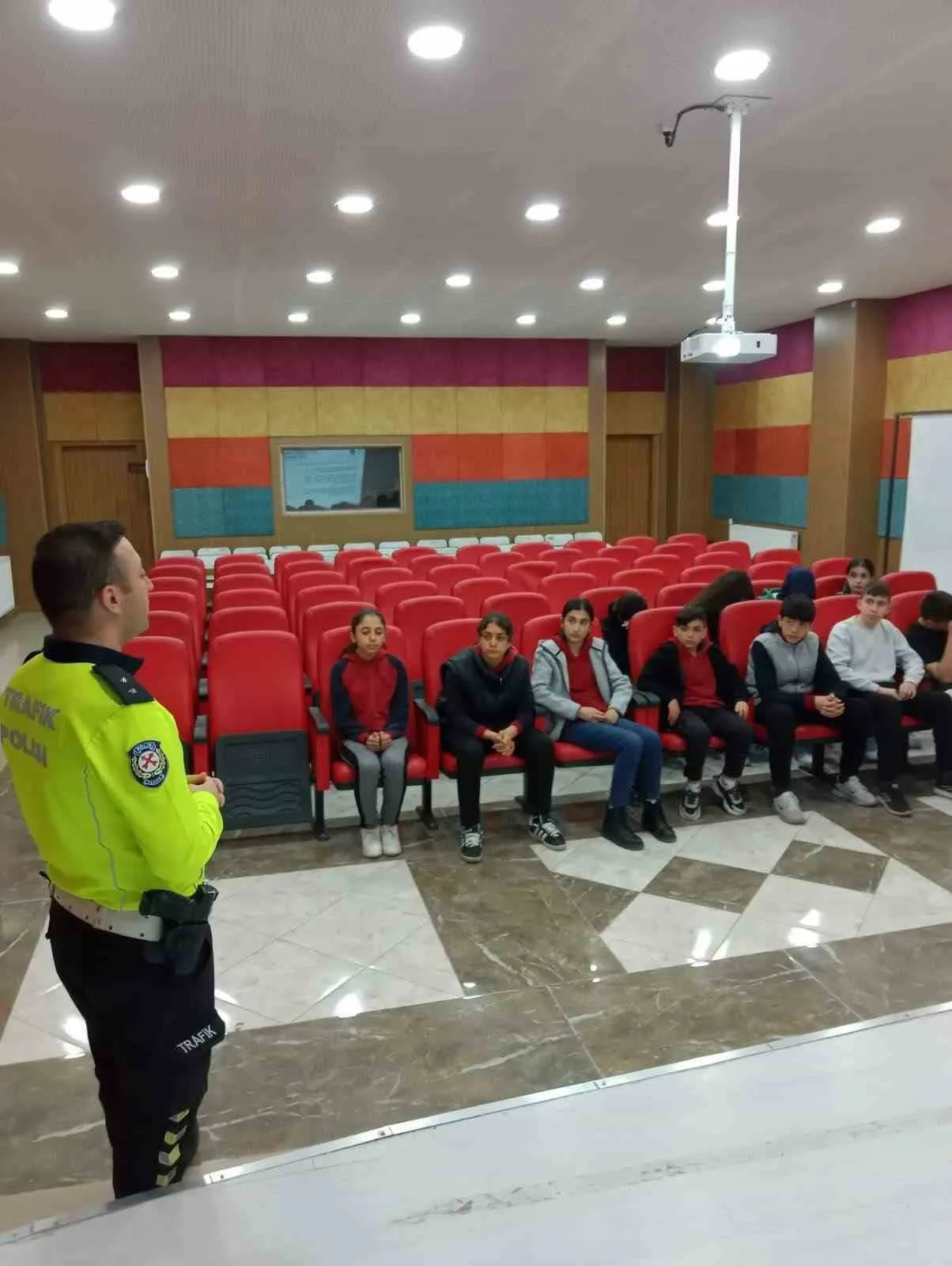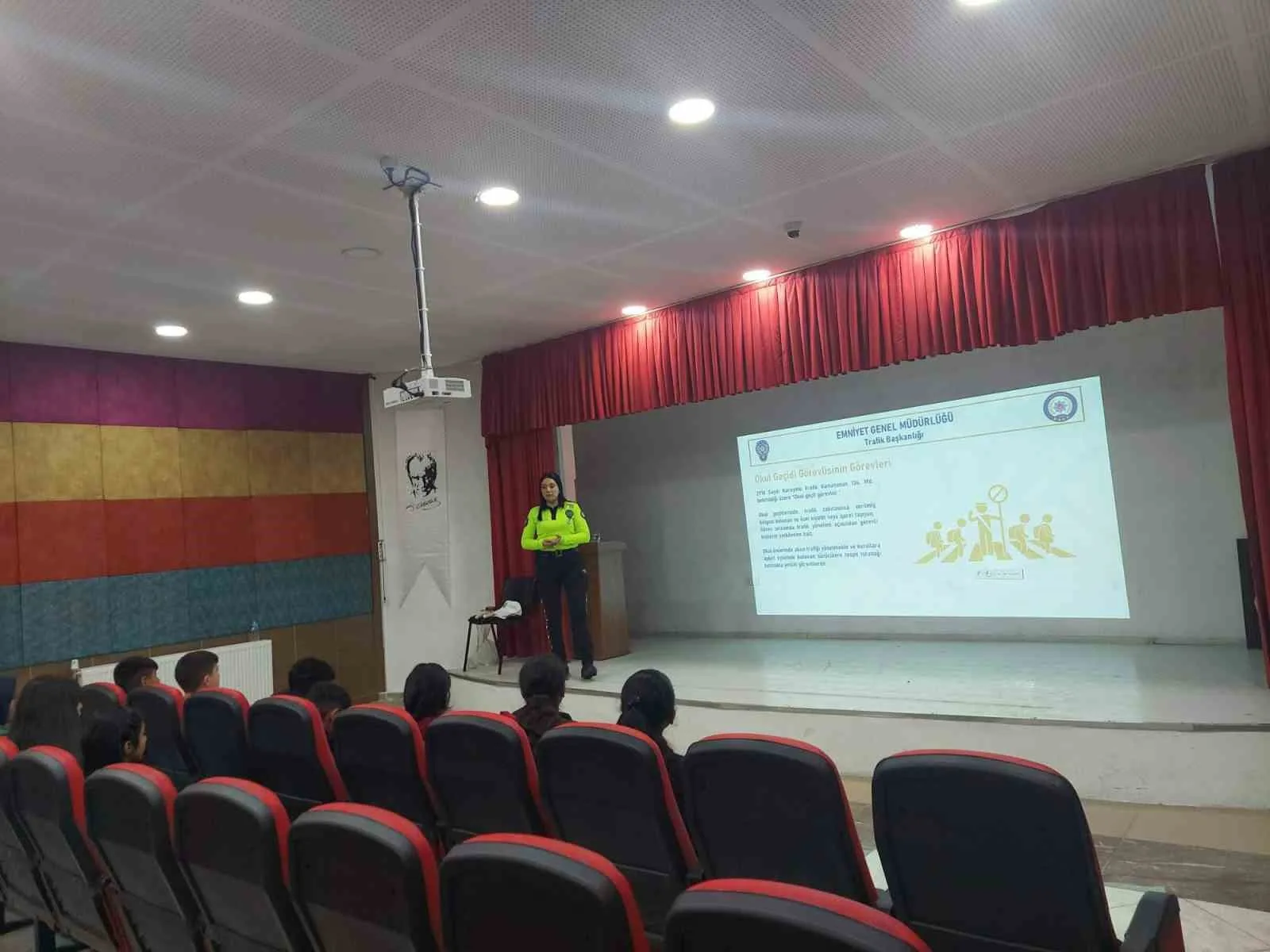 Okul toplantı salonunda düzenlenen eğitimde öğrencilere, “Okul Geçit Görevlisi” konusunda uygulamalı ve teorik eğitim verilerek öğrenciler temel trafik konularında bilgilendirildi.