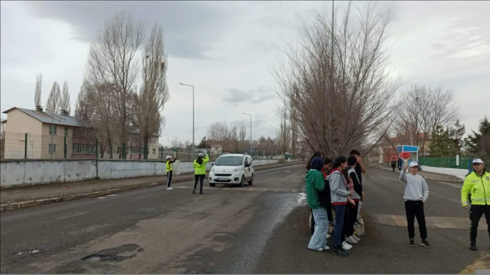 EMNİYETTEN ÖĞRENCİLERE TRAFİK EĞİTİMİ. (OLGUN YILDIZ/ARDAHAN-İHA)