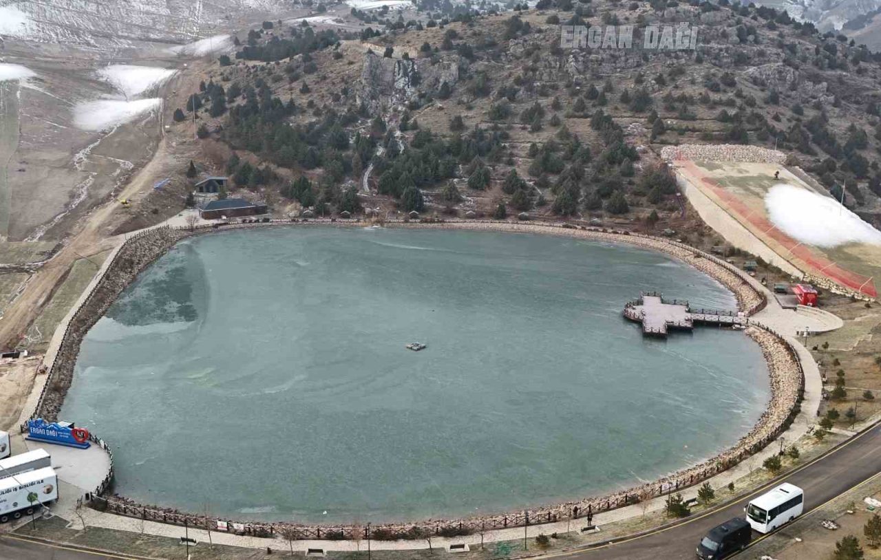 Yüksek kesimlerde hava sıcaklığının sıfırın altında 10 dereceye kadar düştüğü kentte, 2 bin 970 rakımda ve Munzur Dağları’nın eteğinde yer alan Ardıçlı Gölü’nün yüzeyi tamamen buz tuttu. Derinliği yaklaşık 5 metre olan göl, kışın etkisiyle kartpostallık görüntüler oluştururken, bölgeyi ziyaret eden vatandaşlar manzaranın eşsiz olduğunu ifade etti. Ergan Dağı Kayak Merkezi’nin hemen yanında yer alan göl, fotoğraf tutkunlarının da uğrak noktası haline geldi. Ardıçlı Gölü’ndeki kış güzelliği havadan görüntülendi.