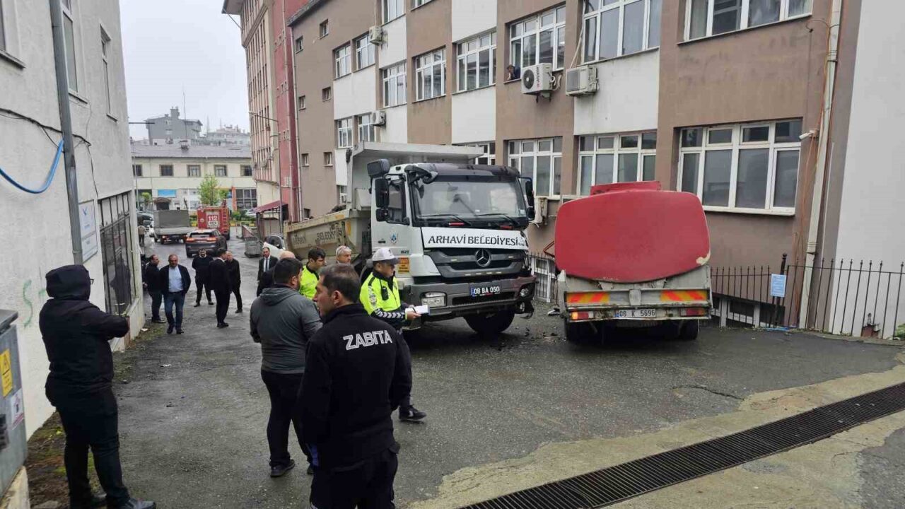 ARTVİN’İN ARHAVİ İLÇESİNDE FRENİ BOŞALAN MAZOT YÜKLÜ BİR TANKER, KONTROLDEN ÇIKARAK BELEDİYEYE AİT ARACA VE KAYMAKAMLIK BİNASINA ÇARPTI; KAZADA CAN KAYBI YAŞANMAZKEN MADDİ HASAR MEYDANA GELDİ.
