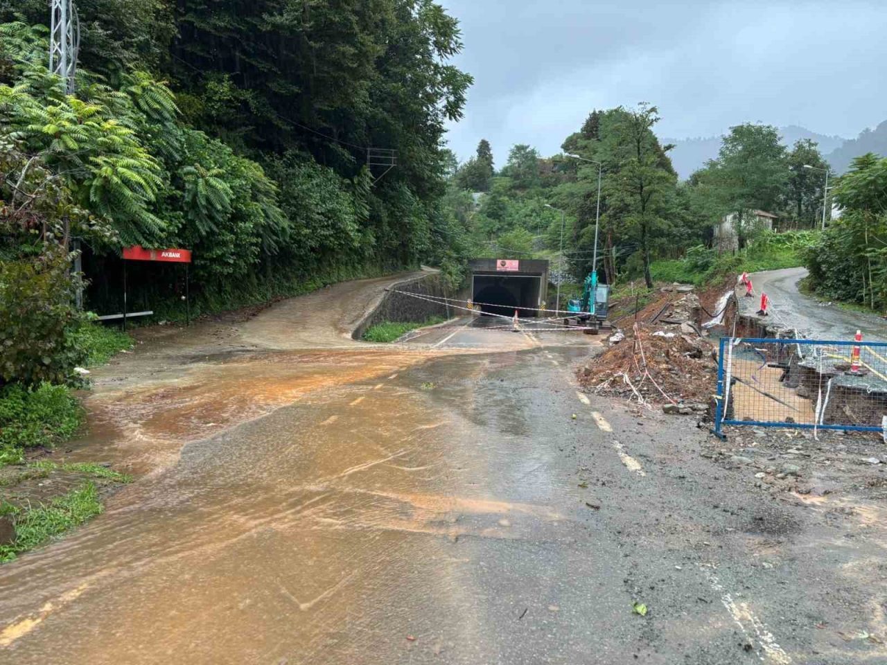 ARHAVİ’DE ETKİLİ OLAN SAĞANAK YAĞIŞLAR SONRASI OLUŞAN HEYELAN RİSKİ NEDENİYLE TÜNEL YOLU TRAFİĞE KAPATILDI.