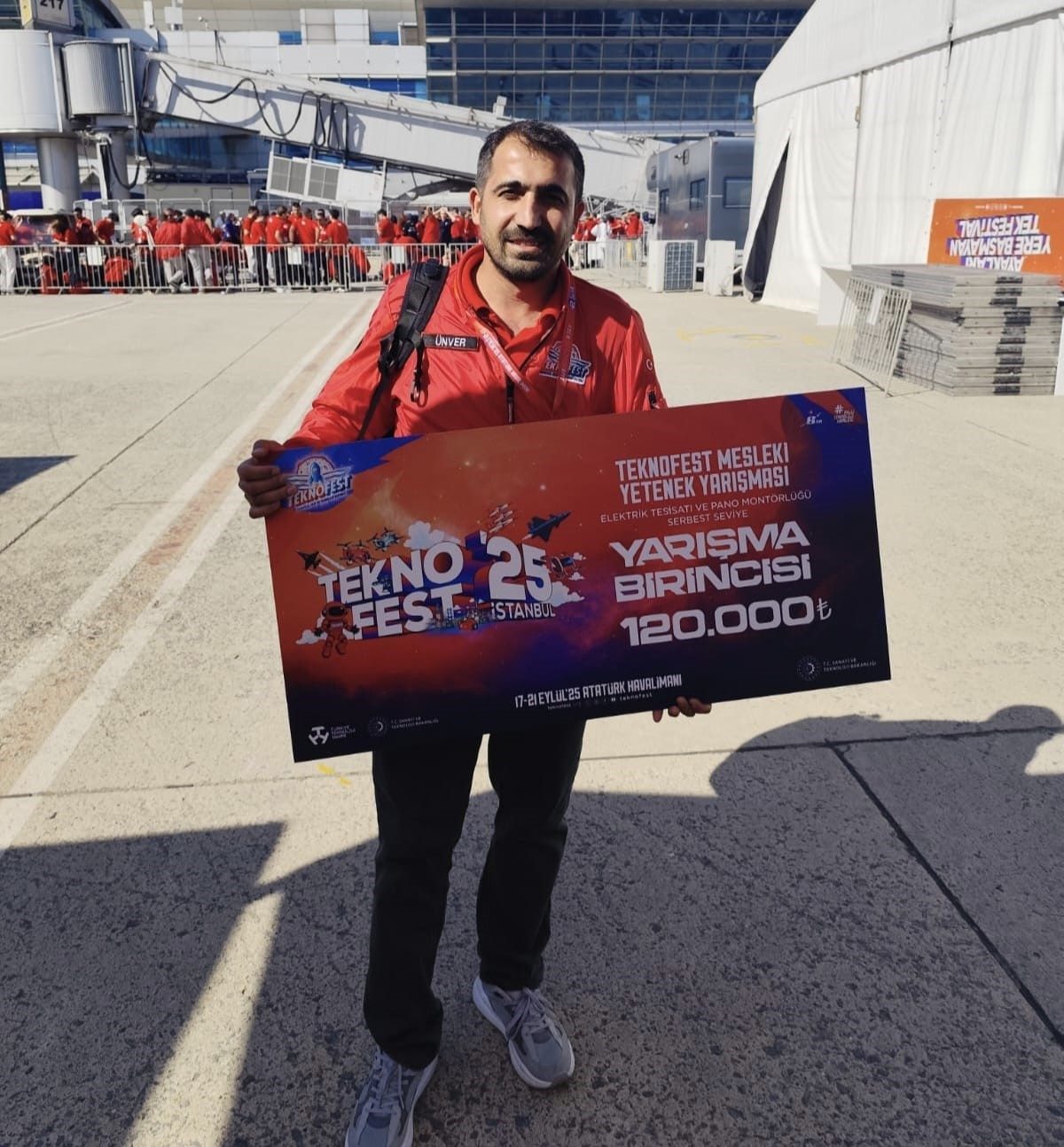 AŞKALELİ ARİF ÜNVER, TEKNOFEST İSTANBUL 2025 KAPSAMINDA DÜZENLENEN MESLEKÎ YETENEK YARIŞMASI, PANO MONTÖRLÜĞÜ SERBEST SEVİYE KATEGORİSİNDE ÜSTÜN BİR PERFORMANS SERGİLEYEREK TÜRKİYE BİRİNCİSİ OLDU.