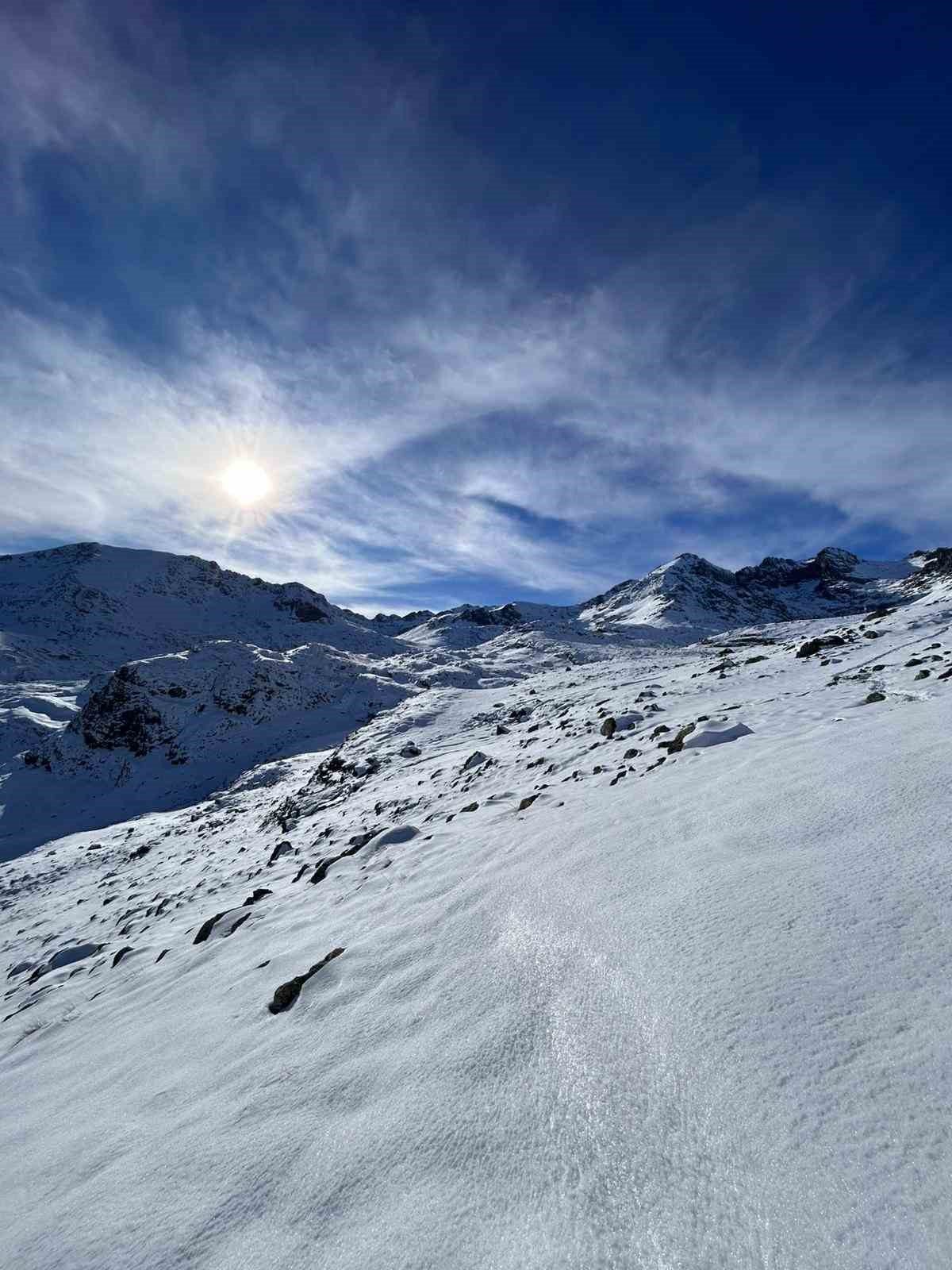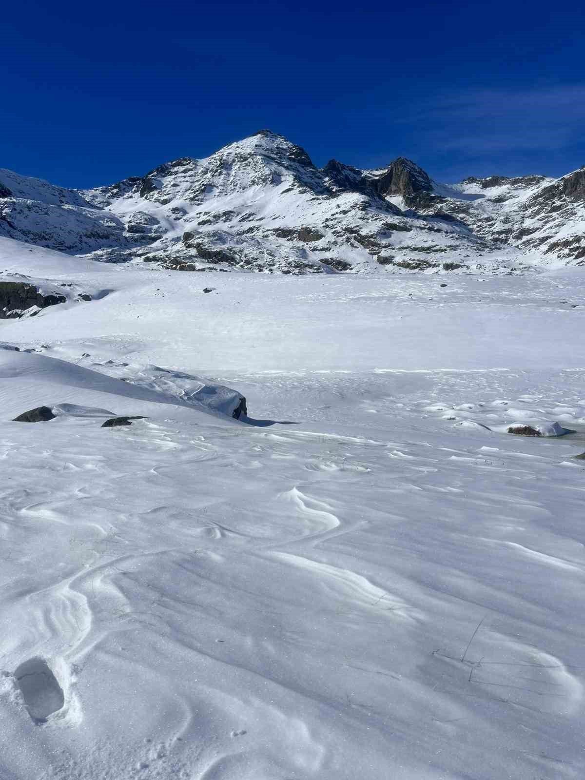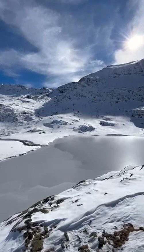 Bölgede kar yağışının başlamasıyla birlikte yolu kapanan tabiat parkına ulaşan 3 adrenalin tutkunu gezgin, karla kaplanan zirveleri ve donan gölleri görüntüleyerek doğanın kış güzelliğini kayıt altına aldı.