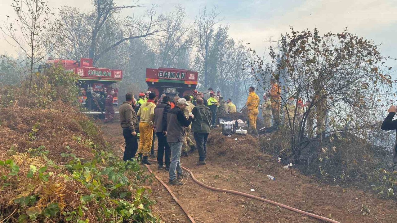 Bölgede ekiplerin hem karadan hem de iş makineleriyle yangının ilerlemesini durdurmaya yönelik çalışmalarının sürdüğü öğrenildi.