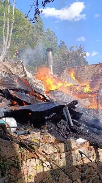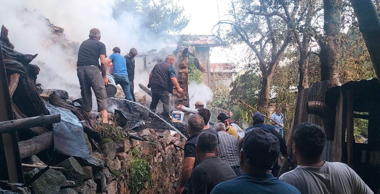 Yangında can kaybı yaşanmazken ev, ahır ve samanlık tamamen yanarak kullanılamaz hale geldi.