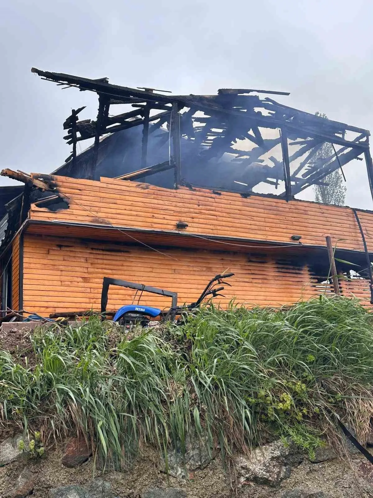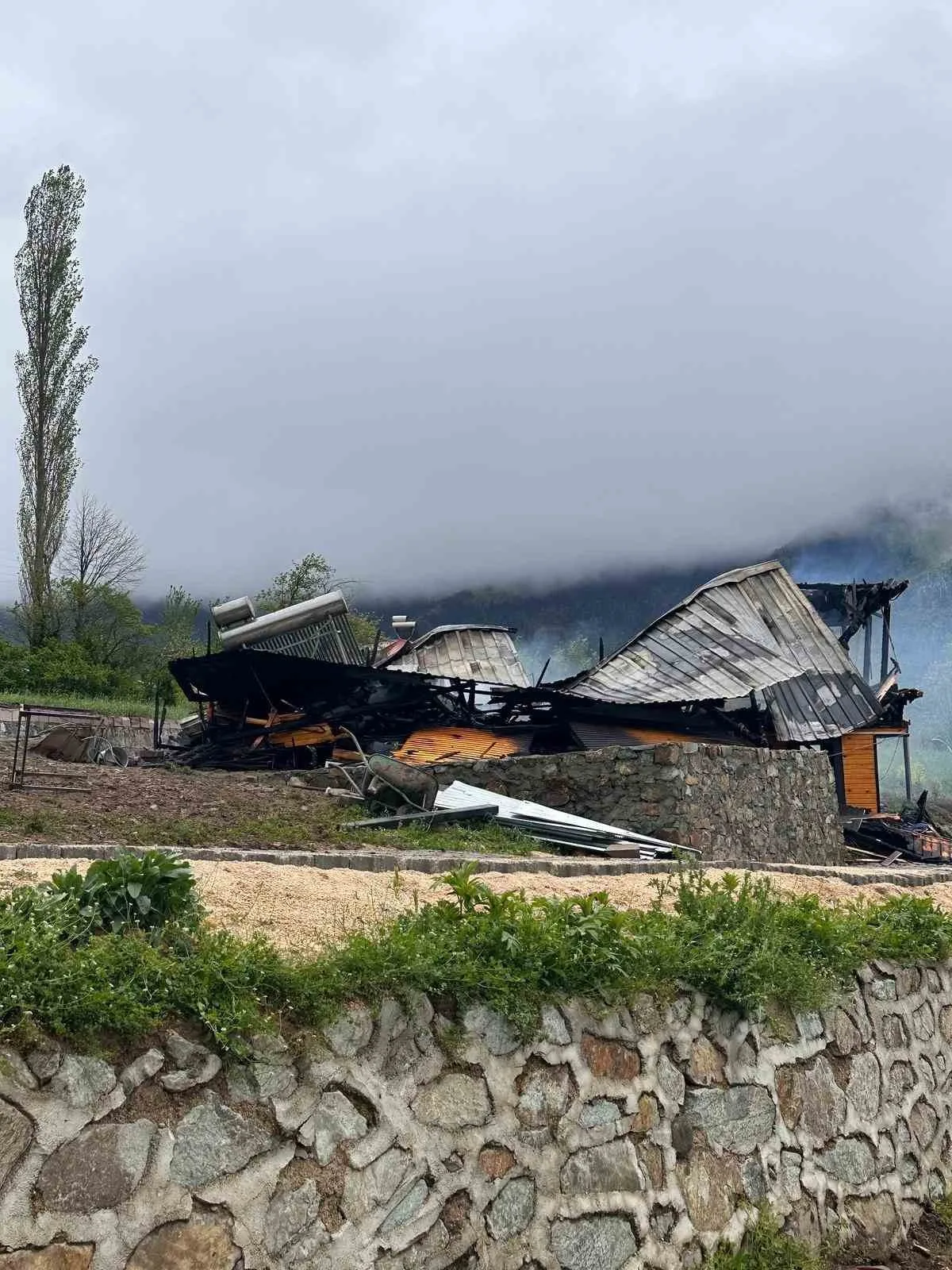 Artvin merkeze bağlı Sümbüllü Köyü’nde çıkan yangında iki katlı ahşap ev kullanılamaz hale geldi.